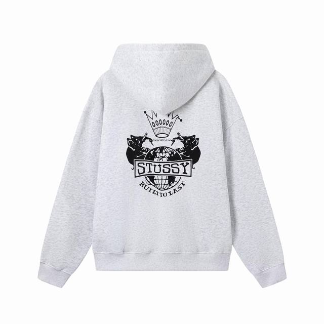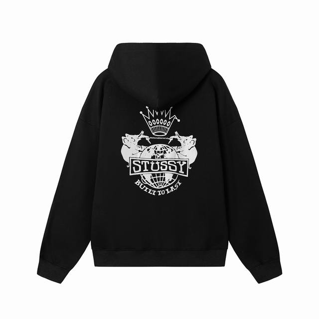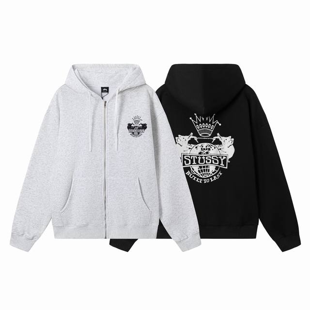 Stussy-916# Stussy Trendy Crown Elephant Hooded Zip-Up Sweatshirt Jacket, 2025 Autumn/Winter New Style, Unisex, Black, Gray, Sizes S-XL, Sizes