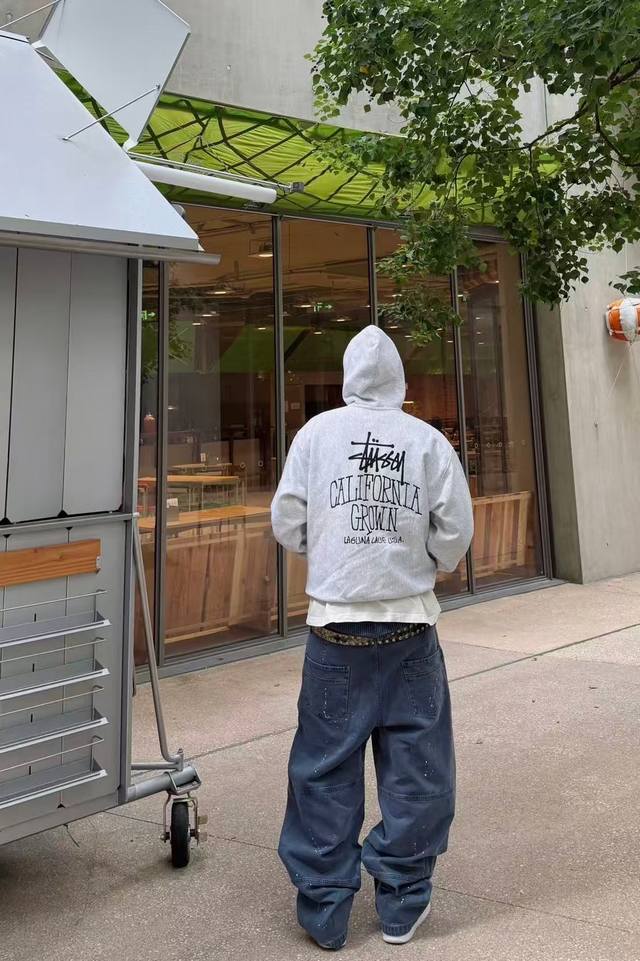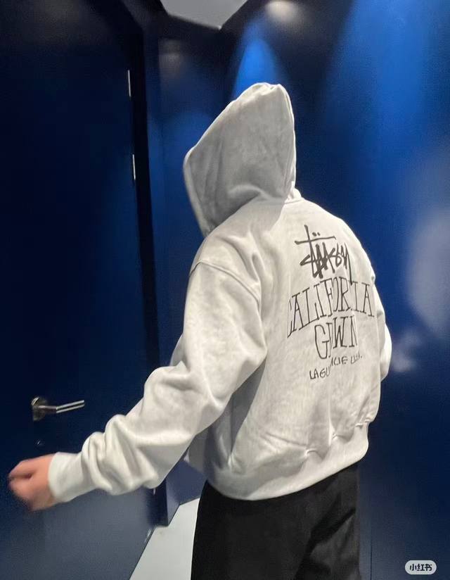 / Stussy-920# Stussy California Letter Print Hooded Zip-Up Sweatshirt, Unisex, Dus