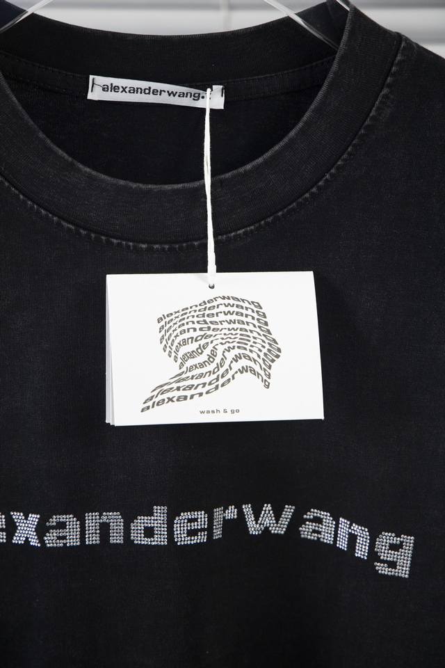 Style: G77 - Premium Edition! Alexanderwang distressed washed, rhinestone lettered short-sleeve top!