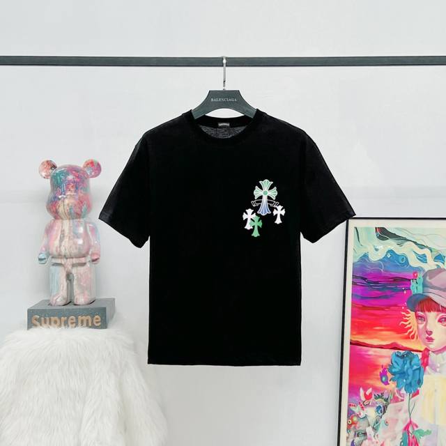 New summer style Ch printed cross high-end short-sleeved T-shirt for all-match couples Made of 250g double yarn pure cotton fabric. High weight. 1:1 version. Official website synchronization