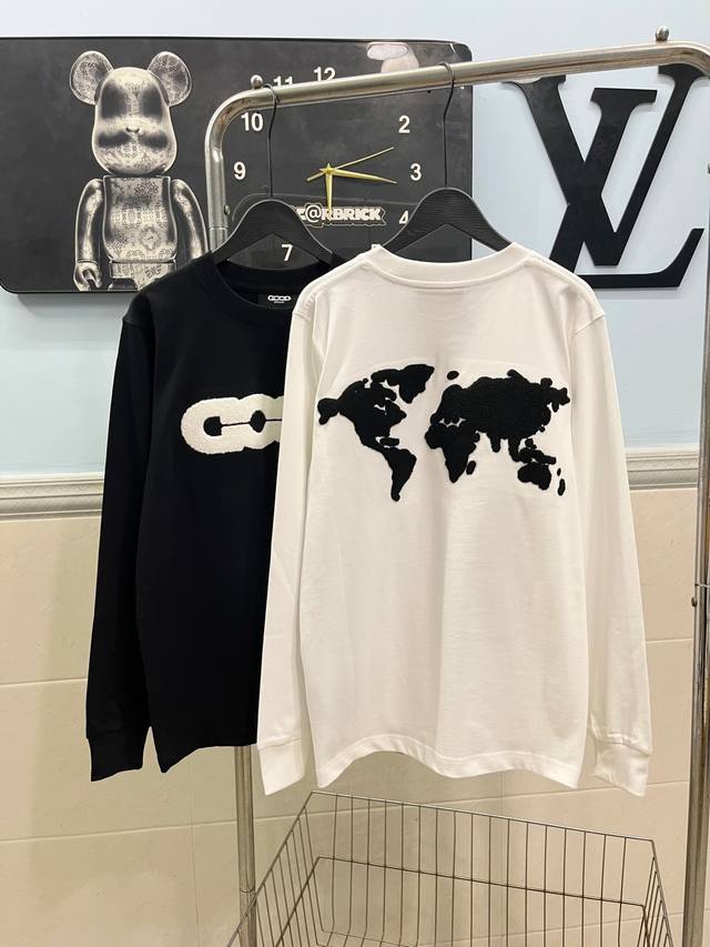 Good Brand 2025Ss New Towel Embroidered Logo Map Long Sleeve. The front and back feature towel embroidery. High-end and versatile design. High-quality replica, easily compareable. Unisex style, all three labels included.