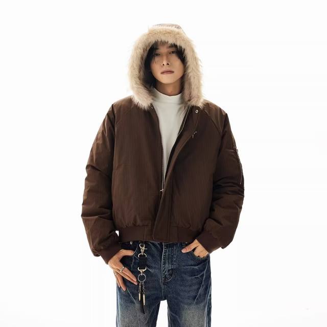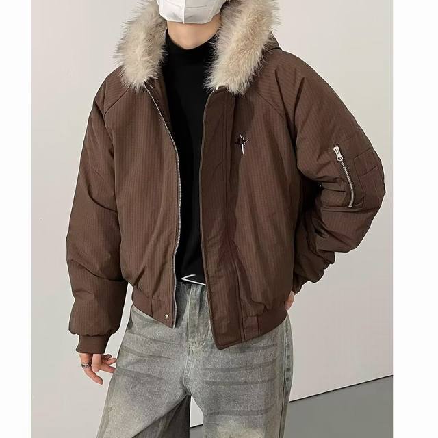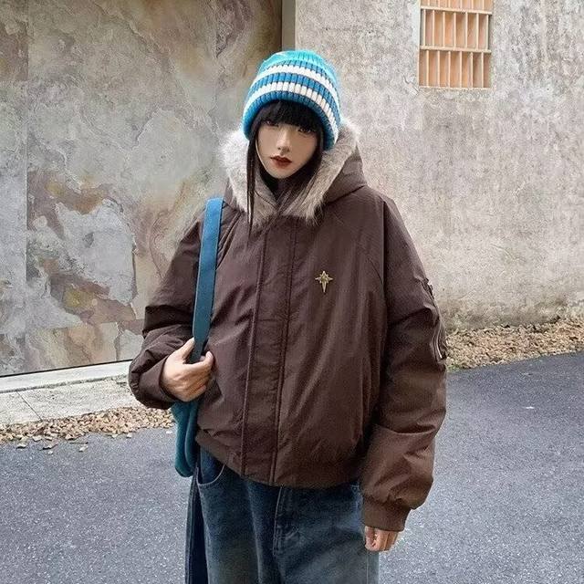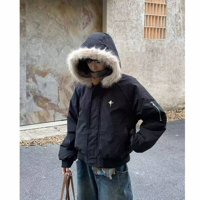 Autumn/Winter Fur Collar Warm American High Street Zip-Up Jacket