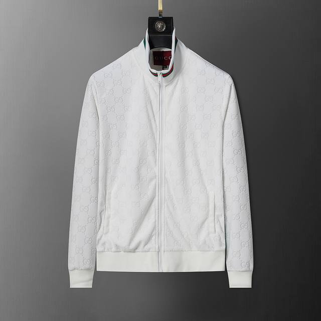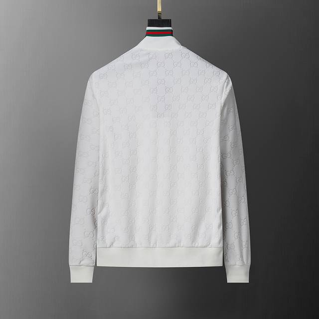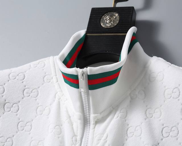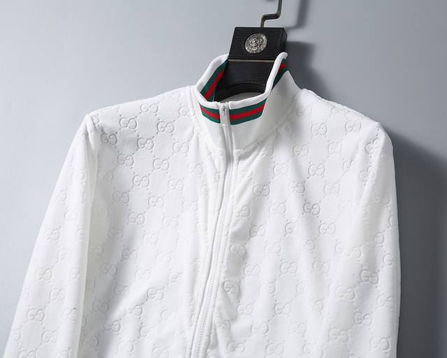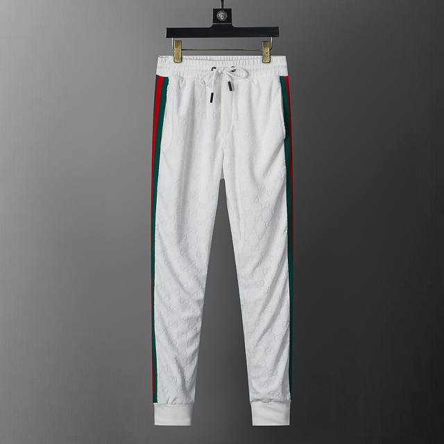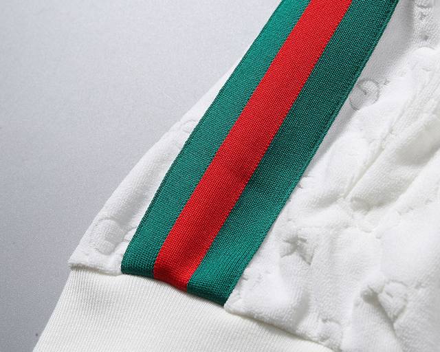 Style No.: 7688# Autumn/Winter New Sports Suit, same as the official website, Gg terry jacquard fabric, woven tape decoration on both sides of the clothes, stylish and elegant design, comfortable fabric, meticulous workmanship, and neat stitching. Great fit. Sizes: M-3XL. Color: White.