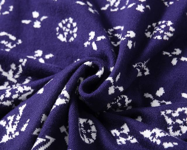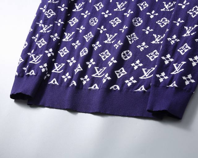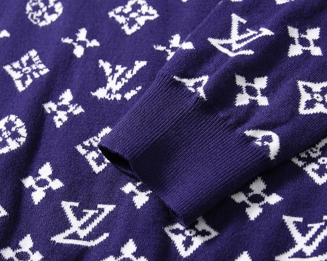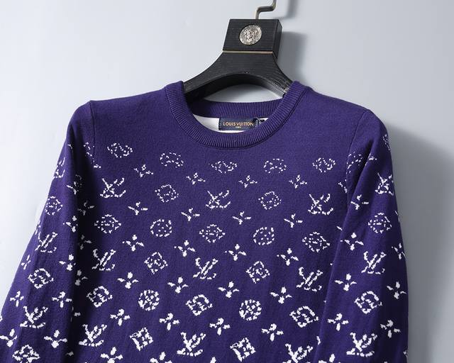 Style No.: A412# New Winter Crew Neck Pullover Sweater, Classic Monogram Gradient Jacquard, Stylish and High-End Design, Thickened for Comfort and Warmth, Sizes M-3XL, Blue DDD