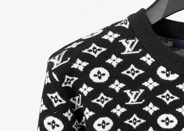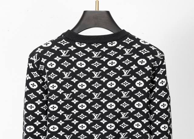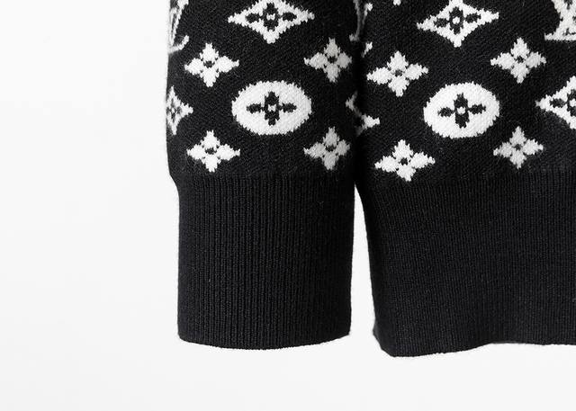 Style No.: A413# New Winter Crew Neck Pullover Sweater, Classic Monogram Jacquard, Stylish and High-End Design, Thickened for Comfort and Warmth, Sizes M-3XL, Black DDD