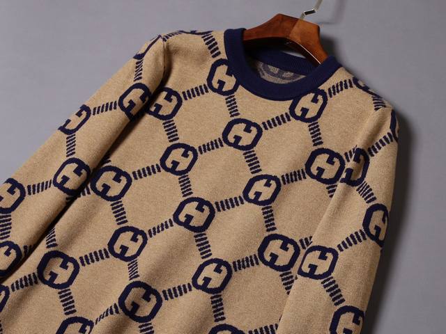 Style No.: A632# 2025 Autumn/Winter New Crew Neck Pullover Sweater (Official Website Synchronization), Stylish and High-End Design, Comfortable and Warm, Sizes: M-3XL, Color: Khaki