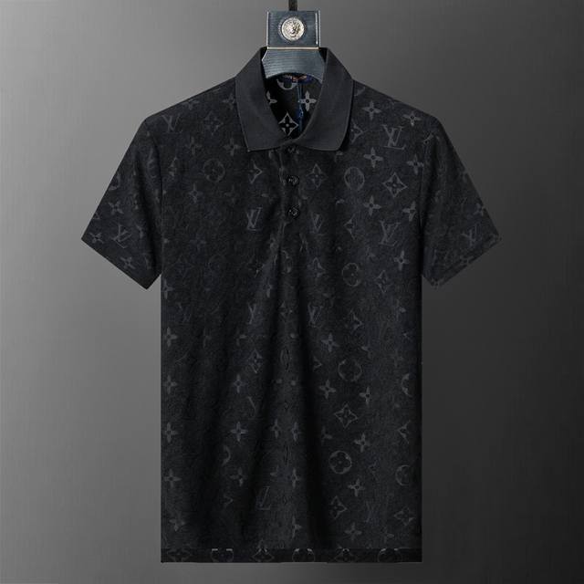Style No.: A723# 2026 Spring/Summer New Men's Casual Collared Short-Sleeved T-Shirt and Shorts Set, Knitted Terry Jacquard Fabric, Stylish and Handsome Design, Comfortable Fabric, Meticulous Workmanship, Neat Stitching. Great Fit. Sizes M-3XL. Black.