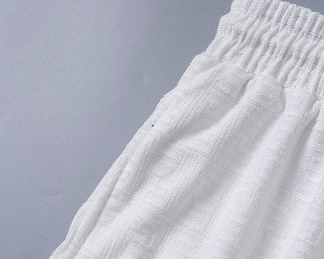 Style No.: A748# 2026 Spring/Summer New Men's Casual Collared Short-Sleeved T-Shirt and Shorts Set, Knitted Jacquard Fabric, Stylish and Handsome Design, Comfortable Fabric, Meticulous Workmanship, Neat Stitching. Great Fit. Sizes M-3XL. Off-White.