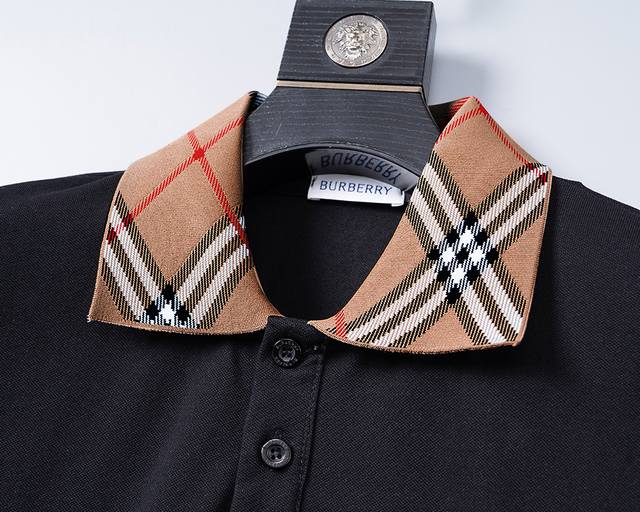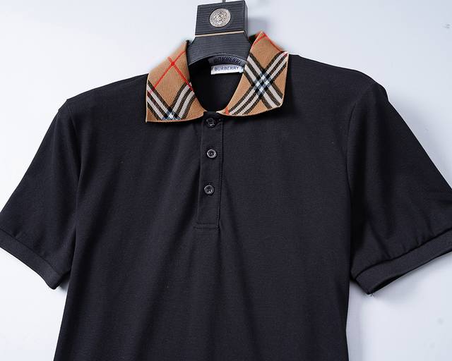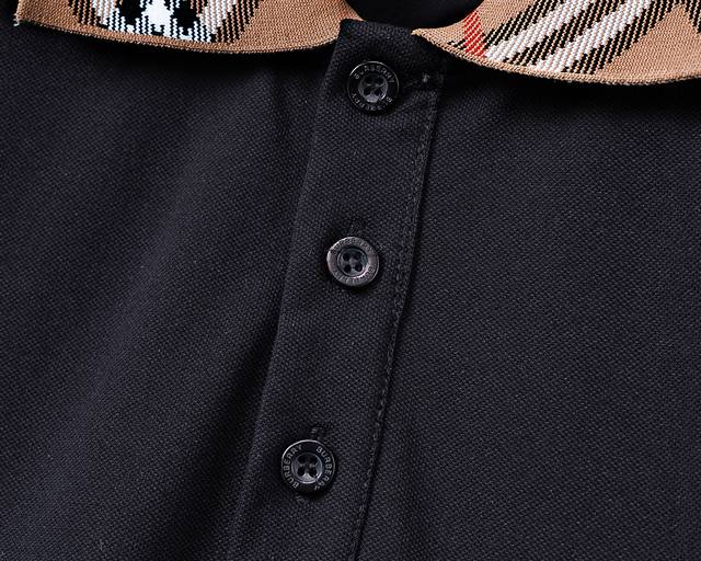 Style No.: A787# 2026 Spring/Summer New Arrival Collared T-Shirt (Official Website Synchronization). Features a silky, shimmering pique fabric, a stylish and chic plaid jacquard ribbed collar, comfortable fabric, meticulous workmanship, and neat stitching. Great fit. Sizes M-3XL. Black.