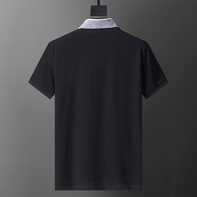 Style No.: A813# 2026 Spring/Summer New Arrival from Official Website: Lapel T-Shirt. Features a silky, shimmering fabric with a contrasting ribbed collar for a stylish and chic look. Comfortable fabric, meticulous workmanship, and neat stitching. Great fit. Sizes M-3XL. Black.