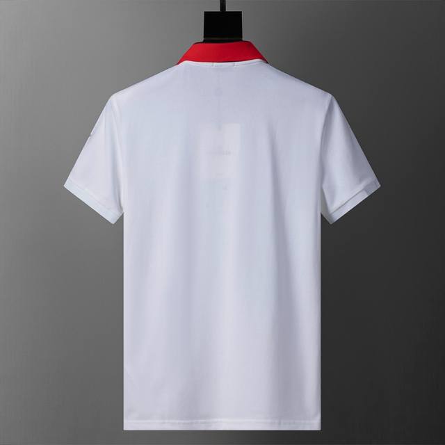 Style No.: A814# 2026 Spring/Summer New Arrival Collared T-Shirt (Official Website Synchronization). Features a silky, shimmering fabric with a contrasting ribbed collar for a stylish and chic look. Comfortable fabric, meticulous workmanship, and neat stitching. Great fit. Sizes M-3XL. White.