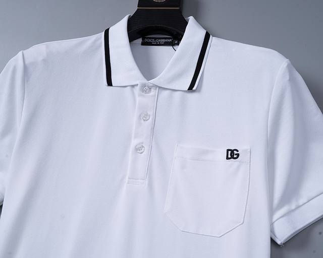 Style No.: A825# 2026 Spring/Summer New Arrival Collared T-Shirt, synchronized with the official website. Features a stylish chest pocket on a silky, shimmering fabric. Comfortable material, meticulous workmanship, and neat stitching. Great fit. Sizes M-3XL. White.