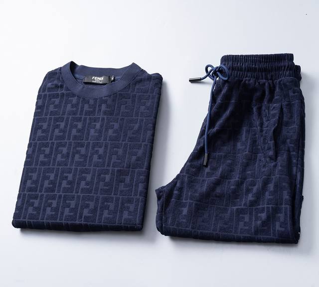 Style No.: A848# 2026 Spring/Summer New Men's Casual Crew Neck Short-Sleeve and Shorts Set, Knitted Terry Jacquard Fabric, Stylish and Handsome Design, Comfortable Fabric, Meticulous Workmanship, Neat Stitching. Great Fit. Sizes M-3XL. Royal Blue DDD