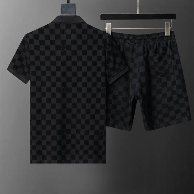 Style No.: A853# Ddd Ddd 2026 Spring/Summer New Collared Short-Sleeved Shorts Set, All-Over Flocked Print, Official Website Synchronized, M-3XL, Black DDD