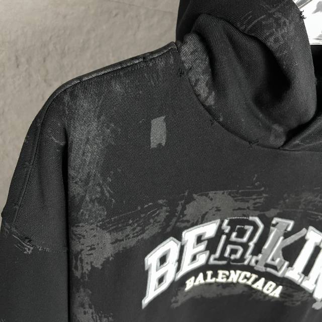 Style No.: A97 Ddd High-end Version - Balenci*Ga Paris New Print + 3D Embroidery Hooded Sweatshirt Undoubtedly another hot item this year. We purchased the original design immediately. The lettering on the front is printed using imported Conley direct-to-garment printing technology. After printing, the design is further enhanced with imported 3D embroidery technology. The finished product undergoes a second wash, distressing, and vintage finish. Exclusively custom-woven and dyed 480G fabric, 100% replicating the original's gradient effect. Distinguished from all other incorrect versions on the market. Welcome to compare. Unisex style. Ddd - Color: Black Ddd - Size: Xs SML DDD