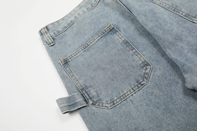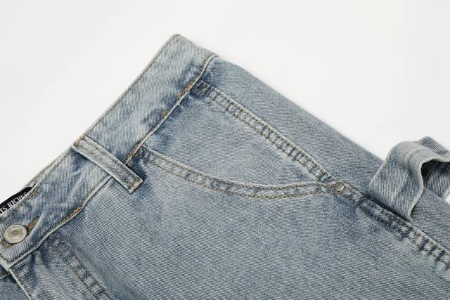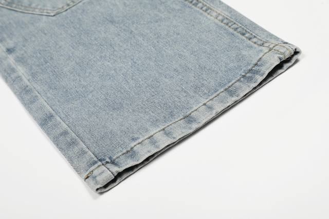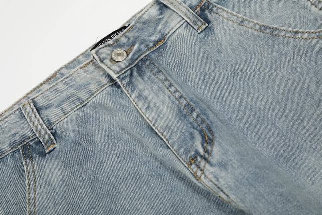 Custom hardware leather tag buttons zipper The pants use a washed distressed spray color process blood stain dirty dye design