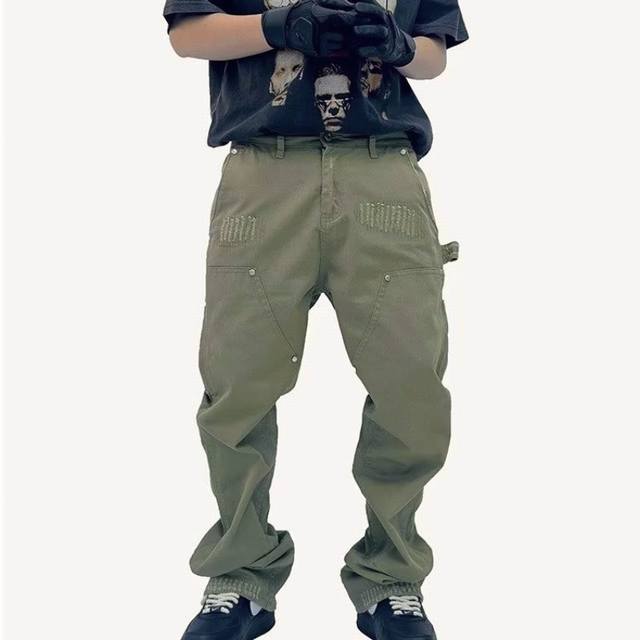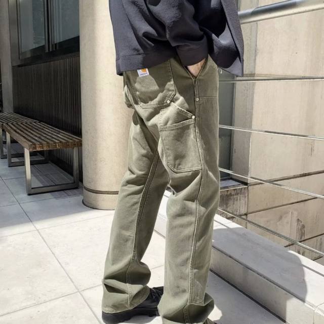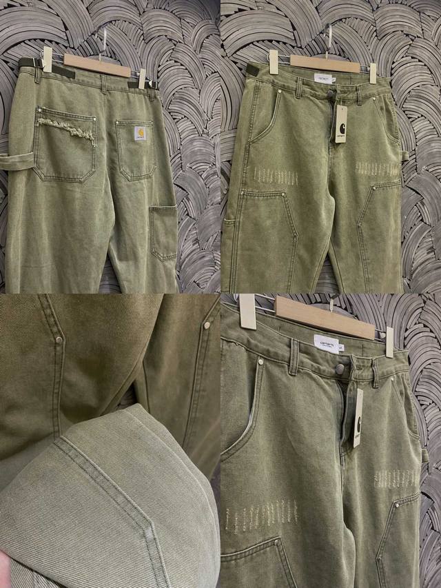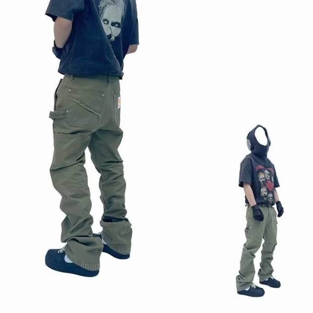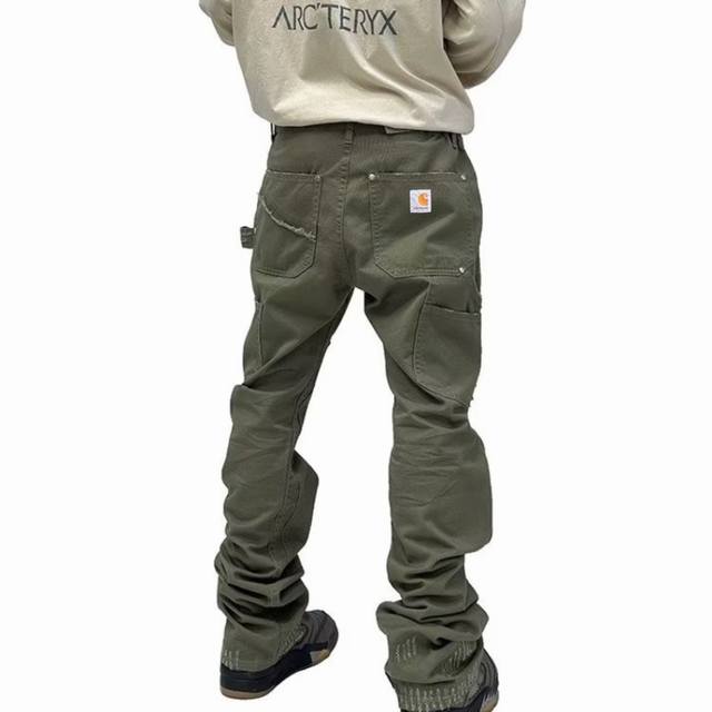 Carhart counter quality high quality solid quality embroidered label logging pants heavy washed distressed workwear trousers couple style
