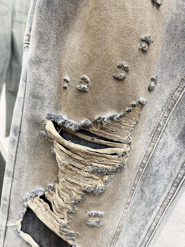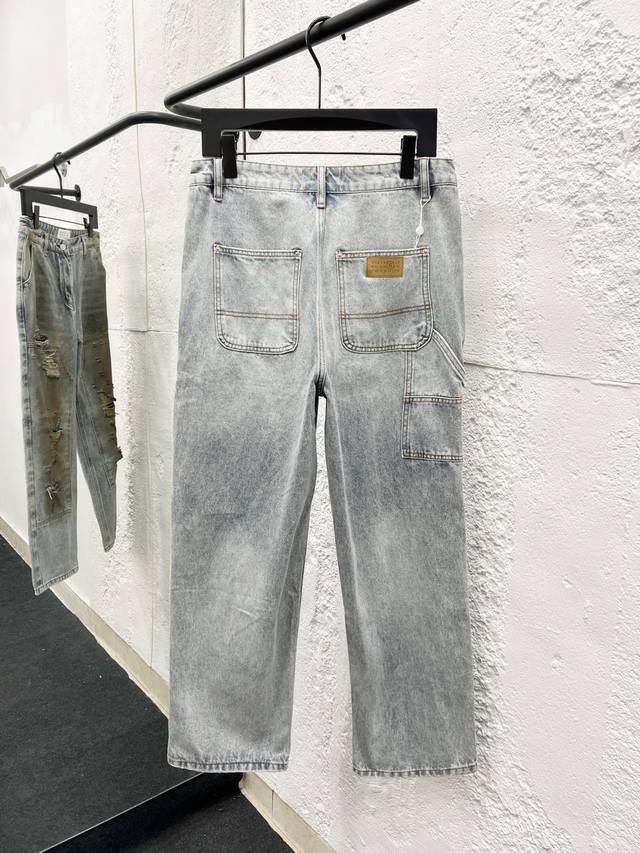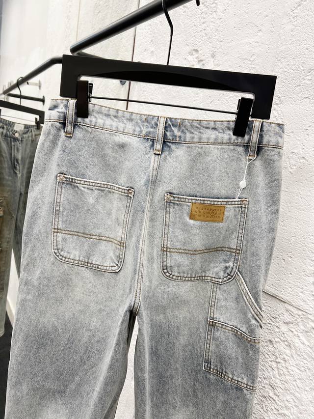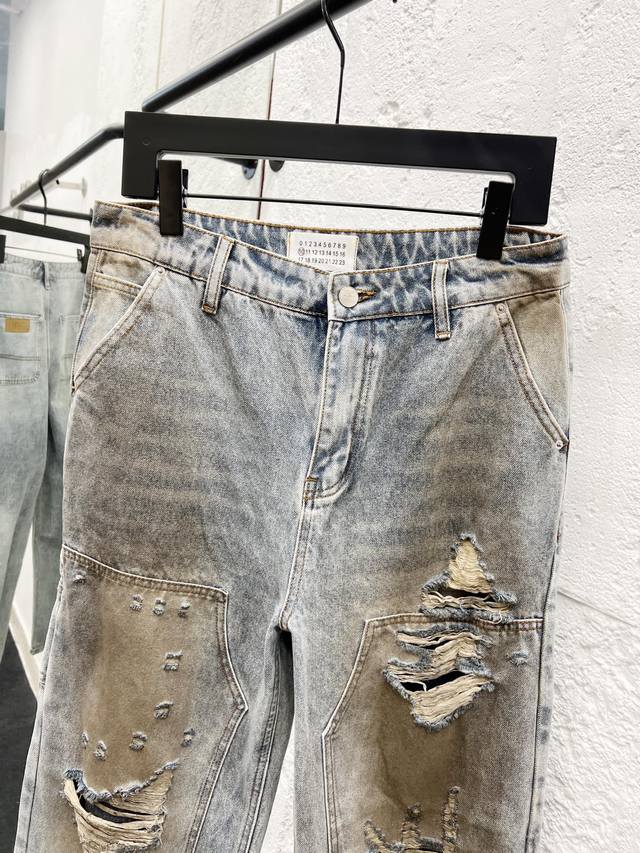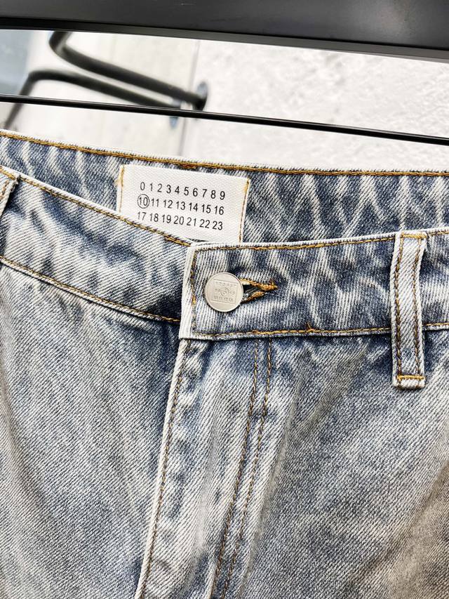 Mm6 Maison Margiela Ss25 Mid-rise Comfortable Distressed Jeans, Unisex. Top-tier quality. Different washes flatter both slim and thick legs. The straight-leg, slim fit is flattering and the perfect length is timeless. Easy to style, a wardrobe essential for various looks! The fabric is firm yet soft against the skin, and the washing process is superb. A must-have! Complete with all tags, labels, and tags. Color: Blue. Sizes: 30, 32, 34, 36.