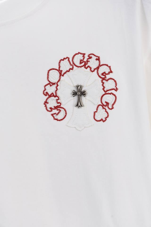 Comehearts 25Ss Sanskrit Horseshoe Cross Applique Embroidery Washed Short-Sleeve T-Shirt