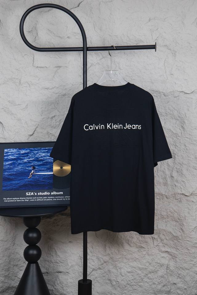 Style No.: M037 Special offer, no returns or exchanges. Calvin Kleinck CK top-tier version S crew neck T-shirt. Made with 280g 36-count reactive eco-friendly fabric, custom-woven and dyed in the same vat as the original, same color ribbing, high-end factory printing with 3D silicone workmanship, full set of custom accessories, top-tier lining and binding. Colors: Black, White. Sizes: S-XL.