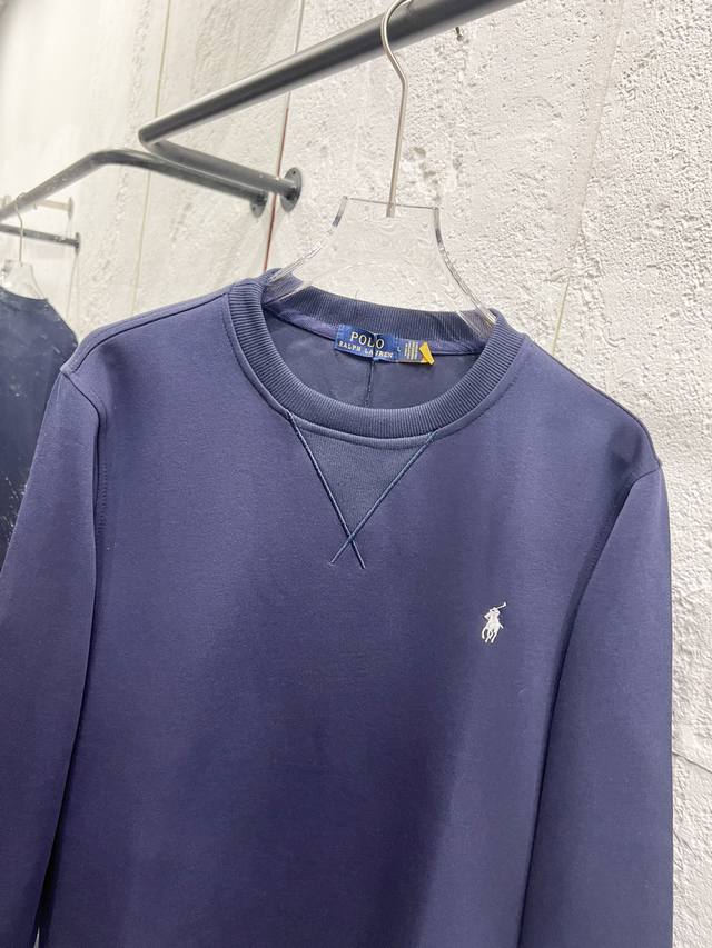 Style No.: T53 Ralph Lauren Crew Neck Sweatshirt with Embroidered Pony Logo, Made of 100% Cotton. Color: Navy Blue. Size: M (105-120 lbs), L (120-135 lbs), XL (135-150 lbs), 2XL (150-165 lbs).