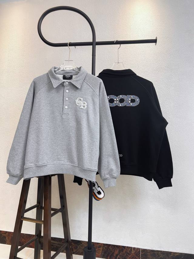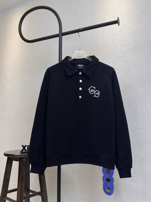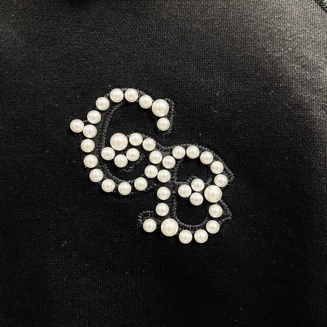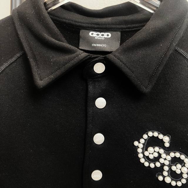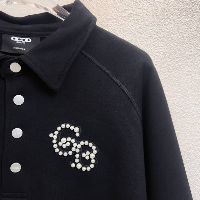 Good Brand Gb Pearl and Rhinestone Polo Shirt Sweatshirt