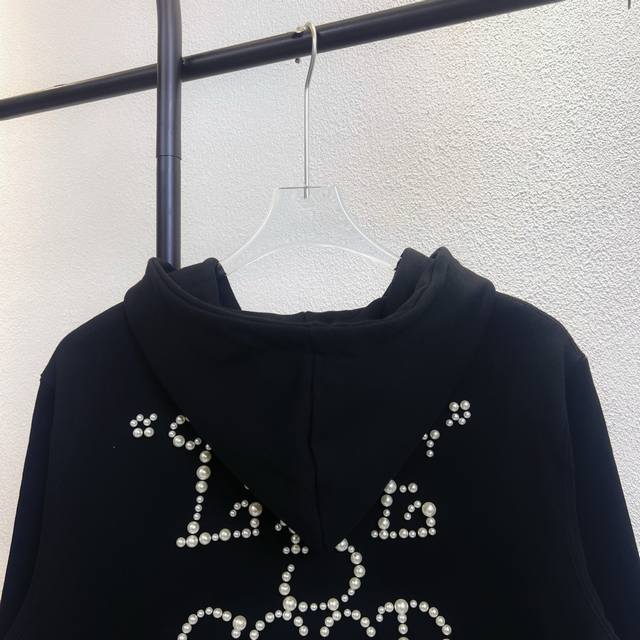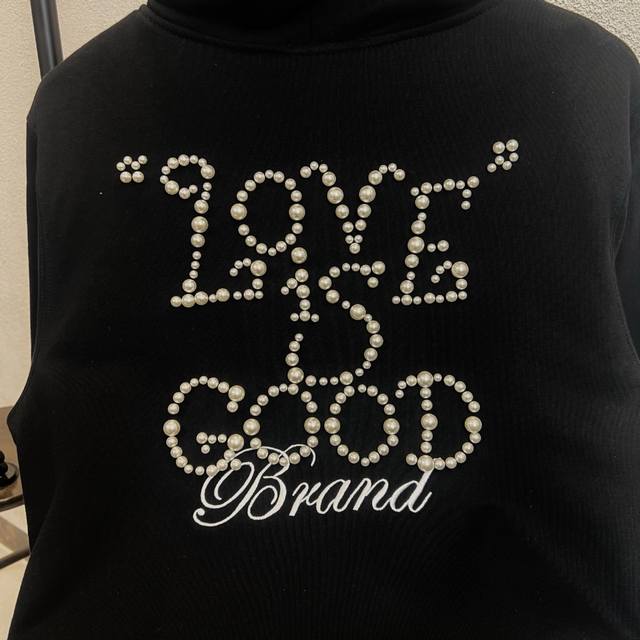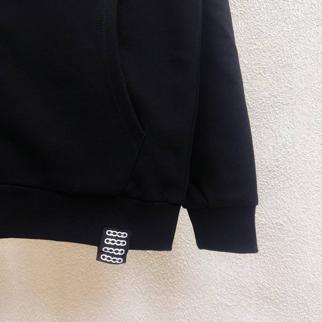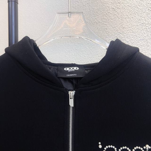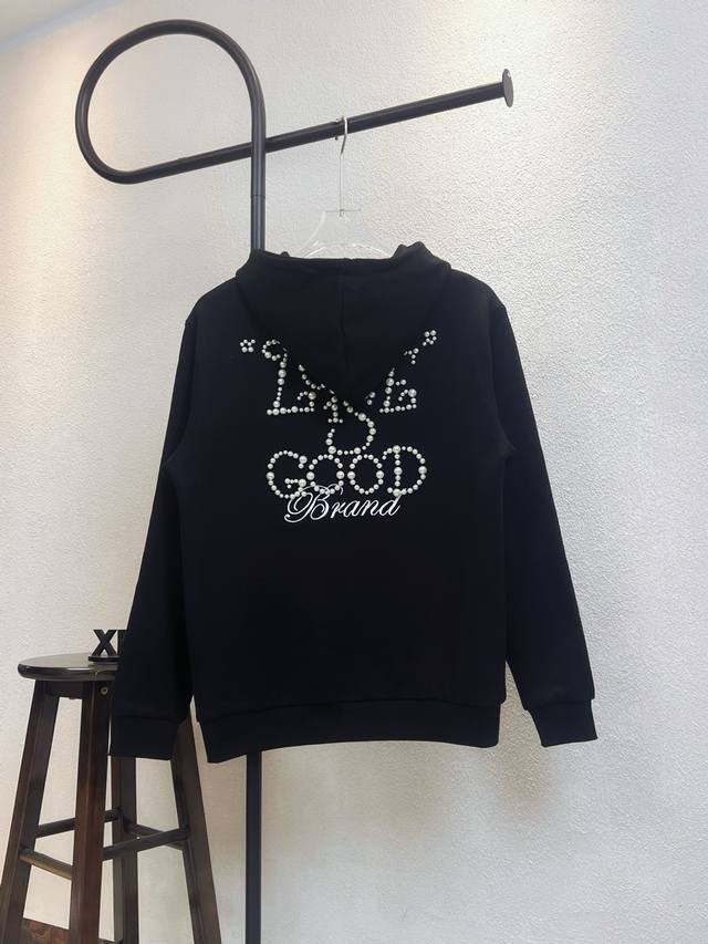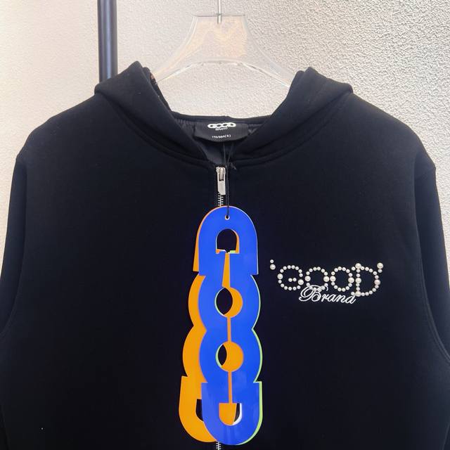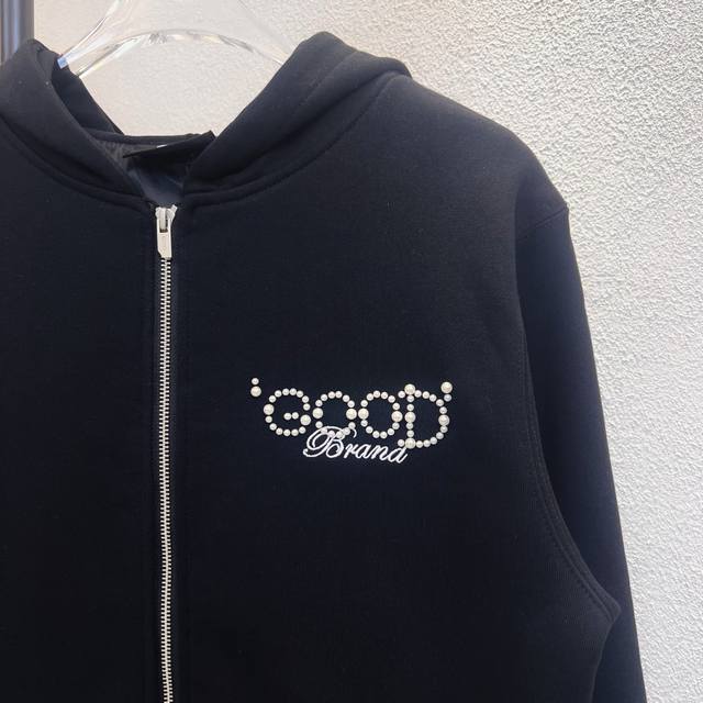 Style No. X301 Black Goodbrand Pearl Logo Slogan Letter Zipper Hooded Jacket. Made of 520g terry cloth, high-weight 95% cotton, 5% hydroxyl, 1x1 double yarn. It will never deform after washing. Unisex, details identical to the official website, complete packaging, all three labels included, moisture-proof paper. Distinguish from market goods at will. Os fit, largest size available, comfortable and stylish. Color: Black. Sizes: S-XL.