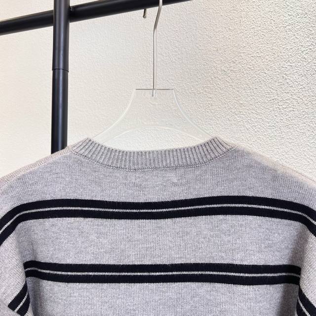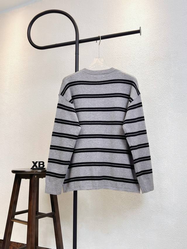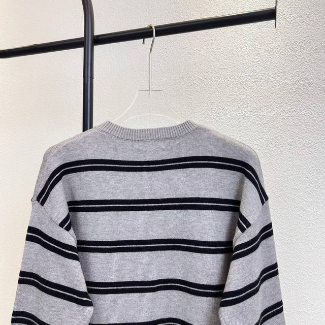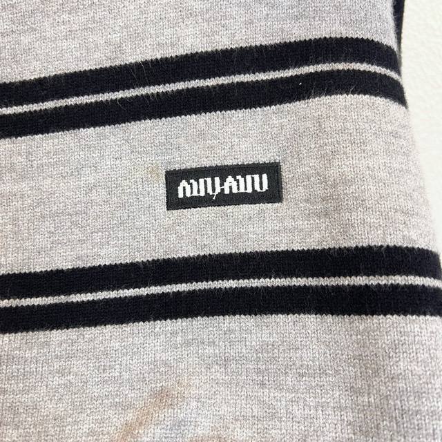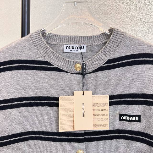 Miumiu Striped Logo Letter Embroidered Knit Cardigan Sweater