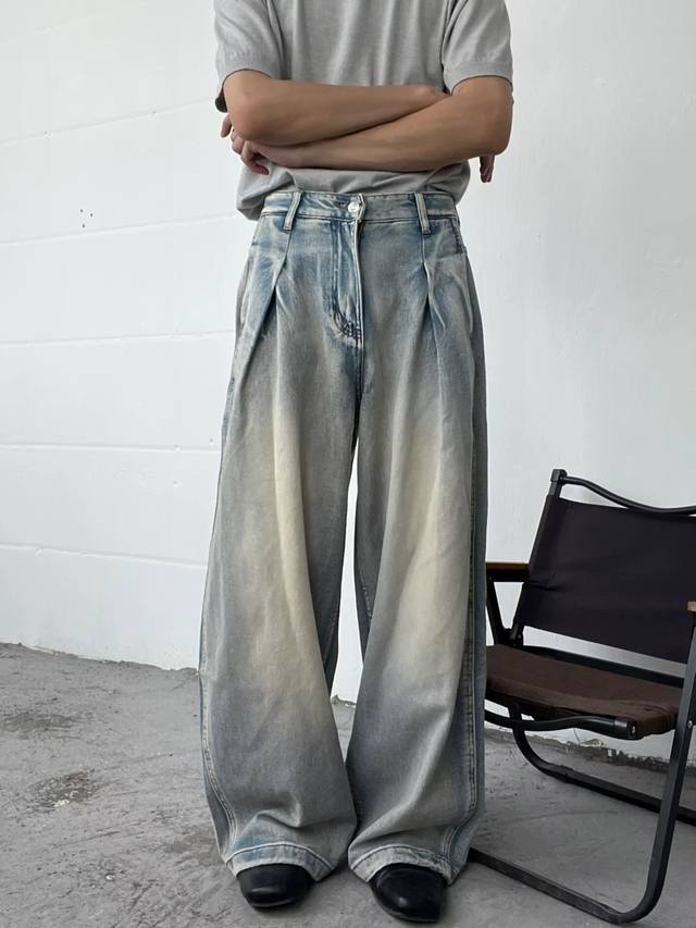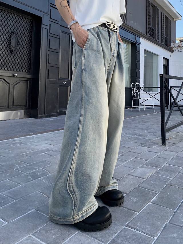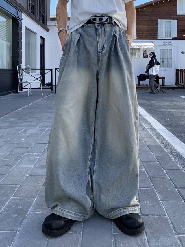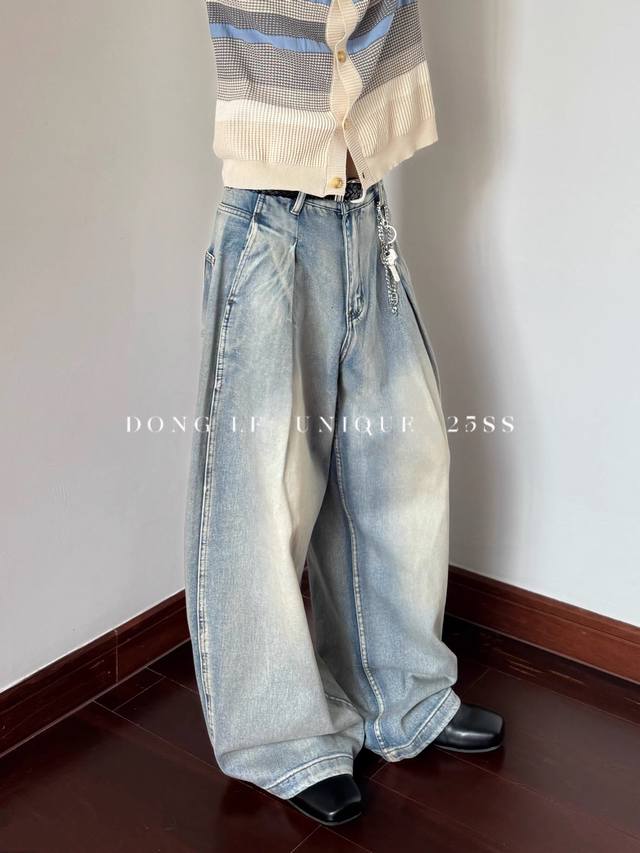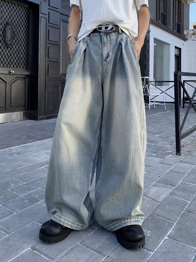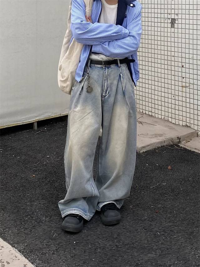 Style No. Xk3729 Ddd American retro pleated design jeans, unisex trendy loose retro wide-leg casual trousers. Custom-made fabric undergoes top-notch high-quality washing, resulting in a dense texture, even color, and clear grain. Very comfortable to wear. The straight leg cut is flattering and slimming, suitable for all body types. A versatile and flattering choice for all seasons, suitable for both men and women. A great match for couples! Ddd Color: Blue Ddd Sizes: S-XXL Ddd Height