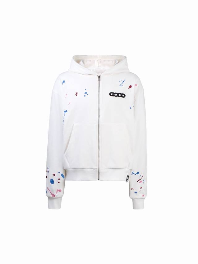 Style Number: 907, Ddd Gb-Goodbrand Candy Embroidery Splatter Paint Cardigan Hooded Sweatshirt, unisex, 500g heavyweight pure cotton fabric, 1:1 replica. Ddd Colors: Black, White. Ddd Sizes: S, M, L, XL. DDD