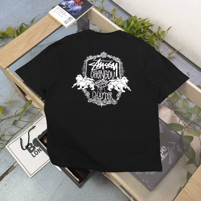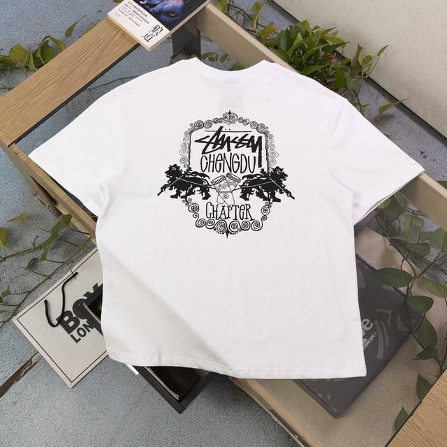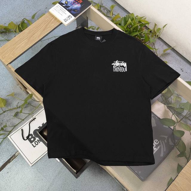 2025 new Stussy Chengdu limited symmetrical pattern Logo letter printing casual couple loose short-sleeved T-shirt, classic will never go out of style, a must-have for everyone, 260G pure cotton combed cotton does not pill or lint, the texture is absolutely comparable! Environmentally friendly imported printing paste! Quality assurance, customized fabrics, customized dyeing, patina printing, environmentally friendly and no cracking, welcome to compare quality, same style for men and women!