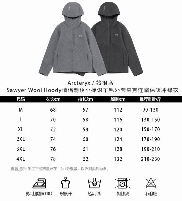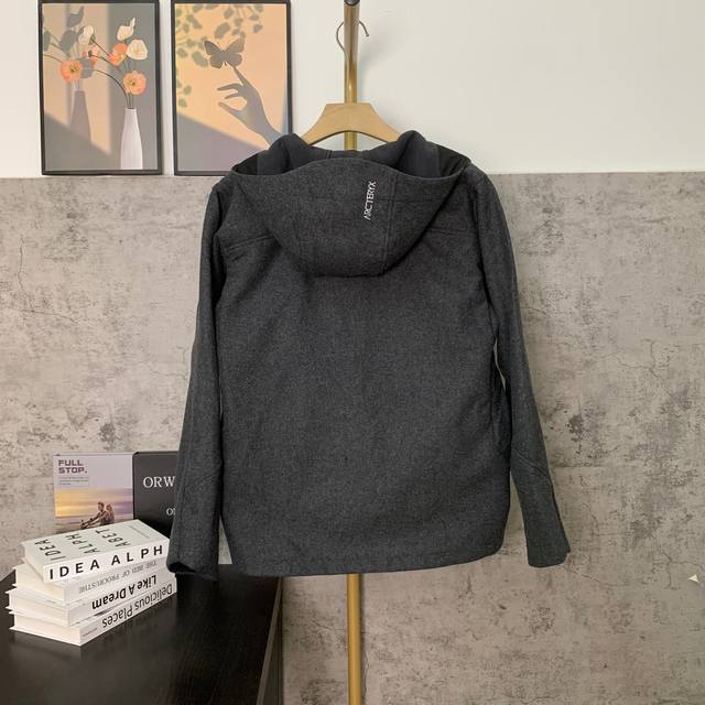 Style Number: D520 Dark Grey Real Shot Image #Arcteryx Sawyer Wool Hoody Couple Embroidered Logo Wool Jacket Hooded Warm Windbreaker Color: Dark Grey/Light Grey Sizes: M/L XL 2XL 3XL 4XL
