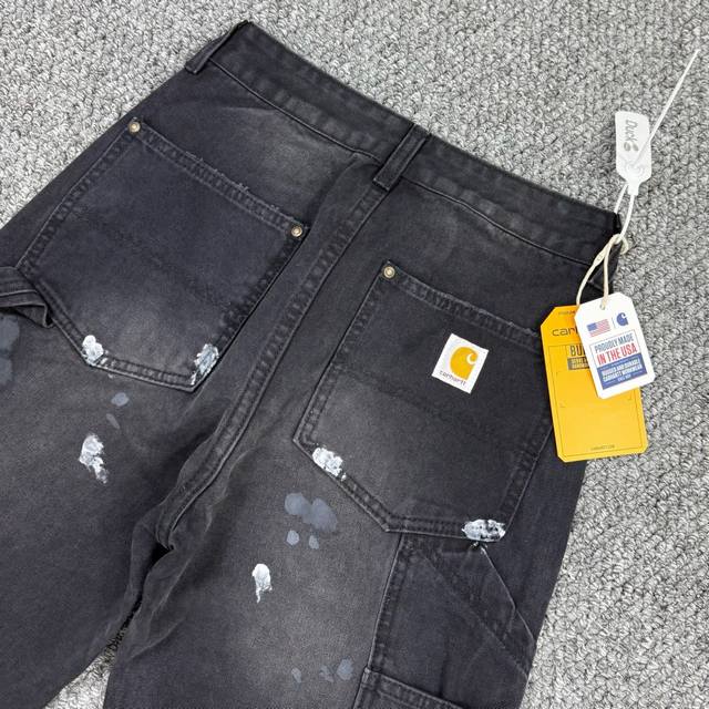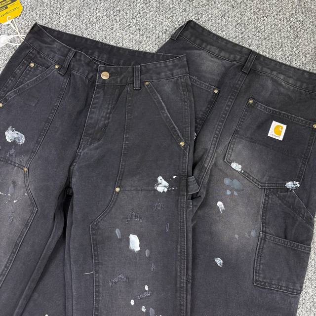 Carhartt Wip Carhartt workwear knee-length pants lumberjack pants ink-splashed washed distressed and worn Cleanfit workwear loose straight pants B01Vibe style