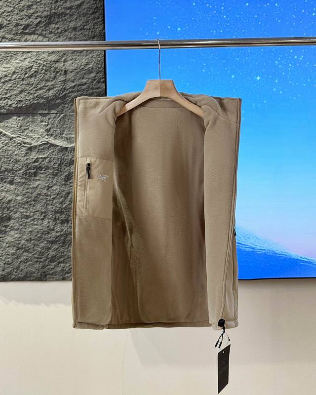 unisex fleece-lined windproof and waterproof vest, featuring a stand-up collar. The inner lining is windproof and warm, making it a business-style outdoor vest. Made with