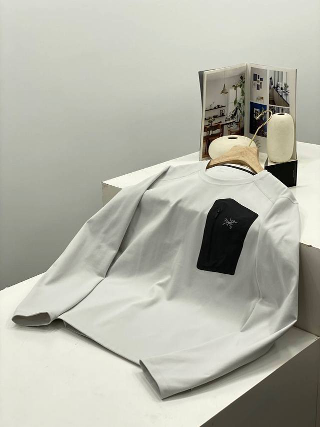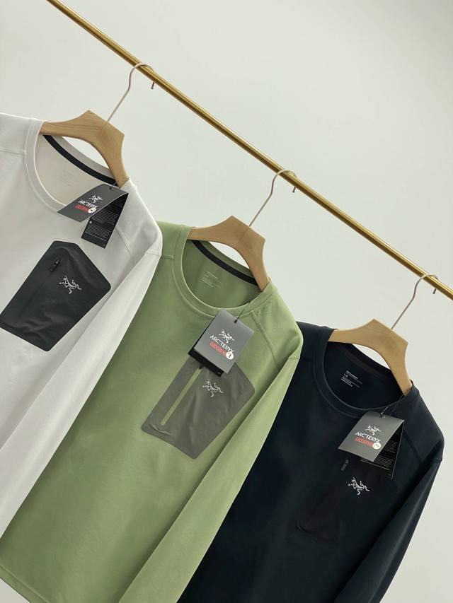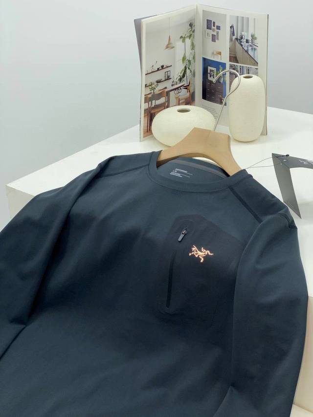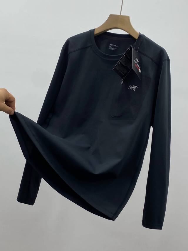 - Arc'teryx Autumn Outdoor Men's Rho Lt Series Sports Fitness Casual Elastic Super Soft Lightweight Knitted Long-Sleeve Pullover Crew Neck Seamless Tapered Zipper Pocket Base Layer T-Shirt