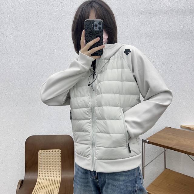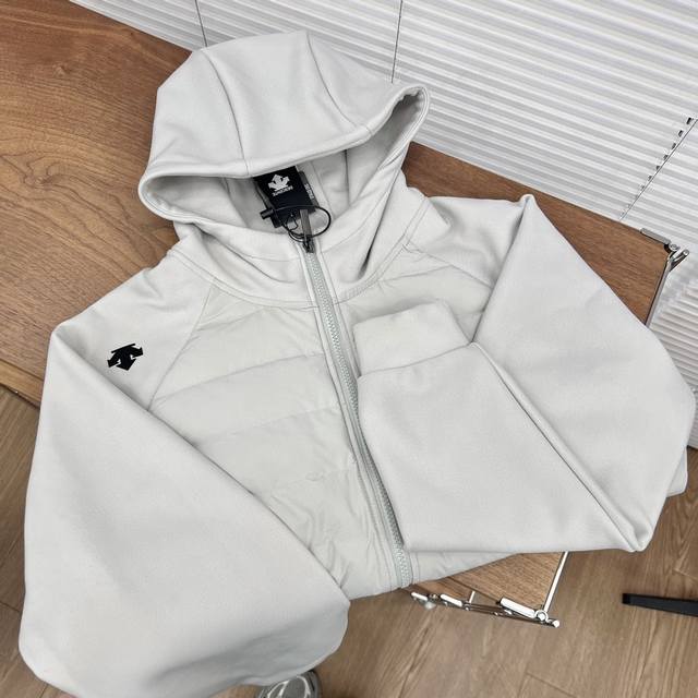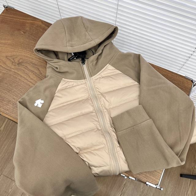 Descente Patchwork Sleeve Hooded Down Jacket