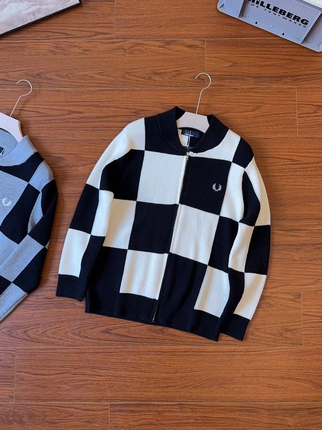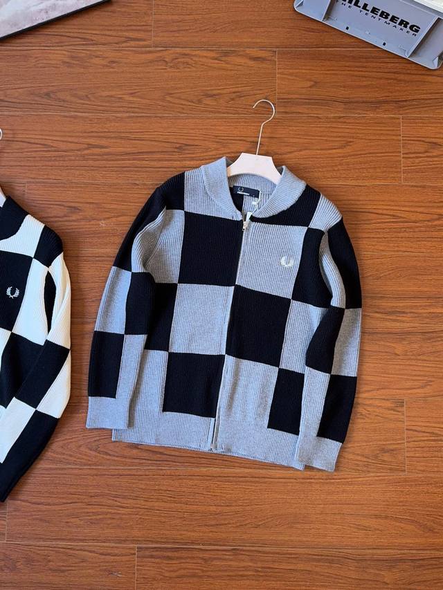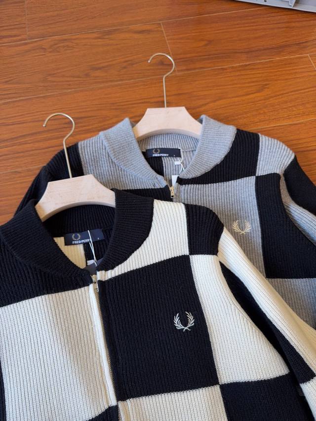 Fp Wheat Ear Checkerboard Cardigan Fred Perry's official website is selling new wheat ear embroidered zipper knitted cardigan! Customized original counter blended fabric, classic small label embroidery on the chest~soft and comfortable to touch, low-key luxury, can handle any occasion, invincible and versatile. A full set of original three-standard accessories are complete! Super thick and heavy, super high quality, invincible! The checkerboard design makes you look more youthful, the same style for men and women, loose version design, super versatile and practical, strong age reduction tool!