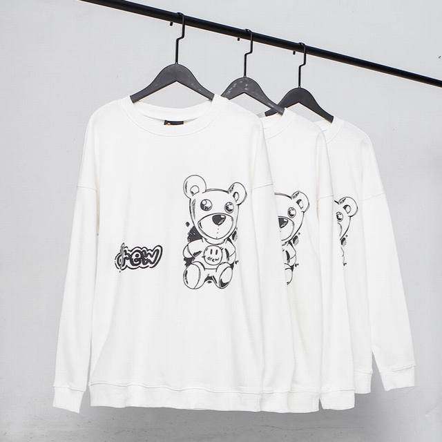 Drew House Theodore Sketch Crewneck Cartoon Bear Crew Neck Pullover Sweatshirt Illustration Bear Sketch