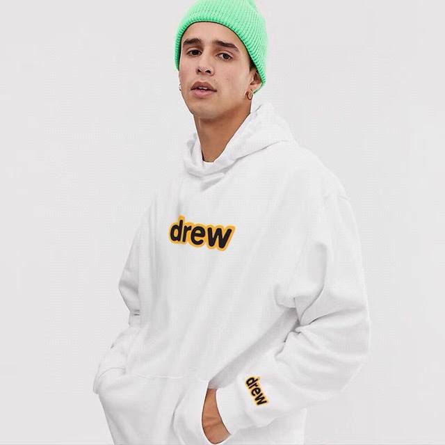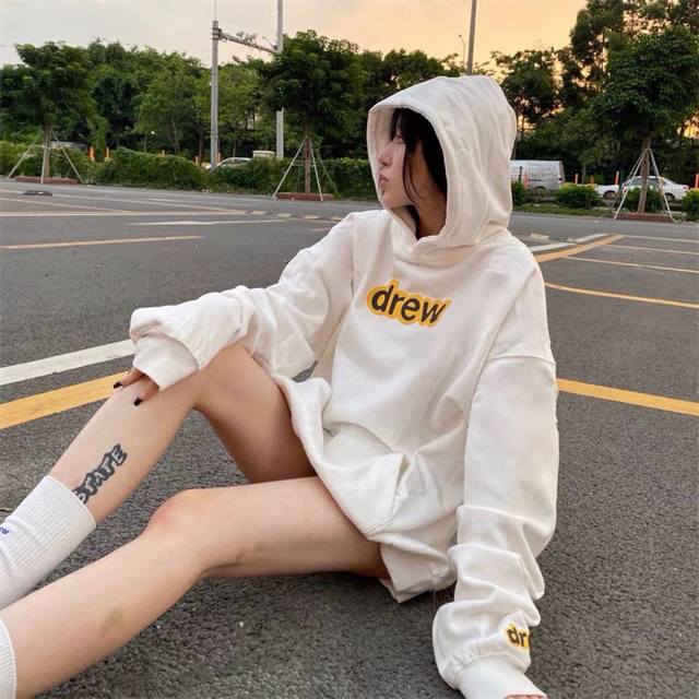 Sweatshirt Update: Terry Cloth Style No. 179, Correct Version. Drew House Oversized Pullover Sweatshirt with Letter Print. A fresh and simple hooded sweatshirt with a warm color scheme. It features the iconic smiley face logo and a casual street skateboard style. The oversized fit looks amazing on. This is a versatile classic, perfect for layering or wearing alone! ~