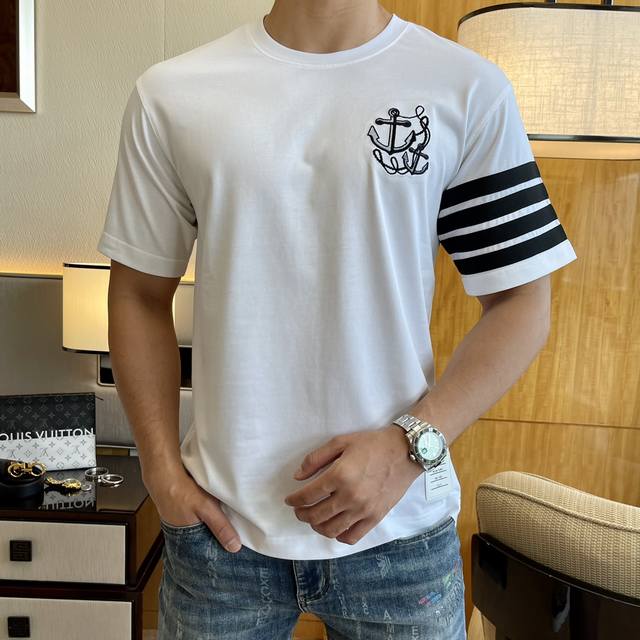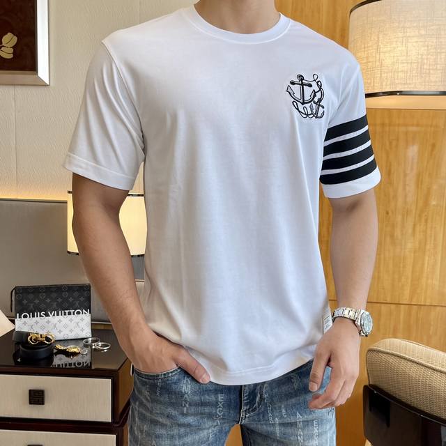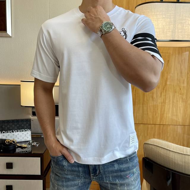 Tb 2025 Spring/Summer Premium Wide-Sleeve Short-Sleeve T-Shirt, Official Website Synchronized High-End Quality Custom Made with Top-Grade Long-Staple Cotton Fabric, 1:1 Production by Top Factory, Fashionable Brand Heavy Craftsmanship Logo Design, Soft and Delicate to the Touch, Skin-Friendly and Comfortable, Versatile and Casual, Great Fit, Must-Have for Stylish Men, Loose Fit, Sizes: M-3XL, Maximum Size 230 lbs! Model 178cm, 146 lbs, Wears Size M, Size