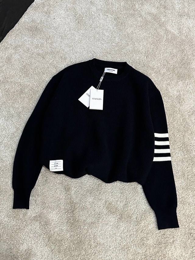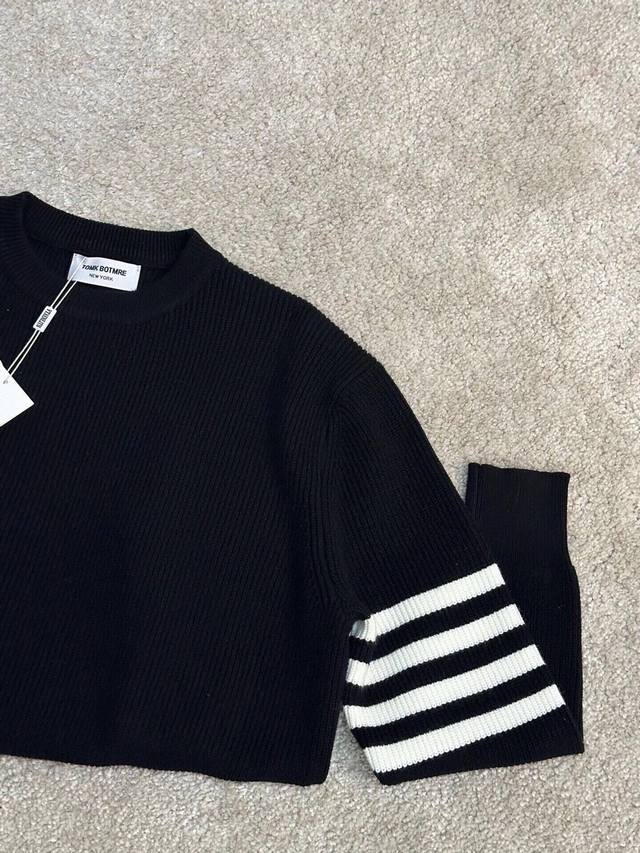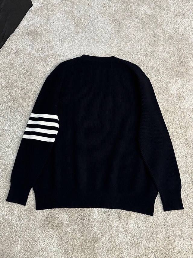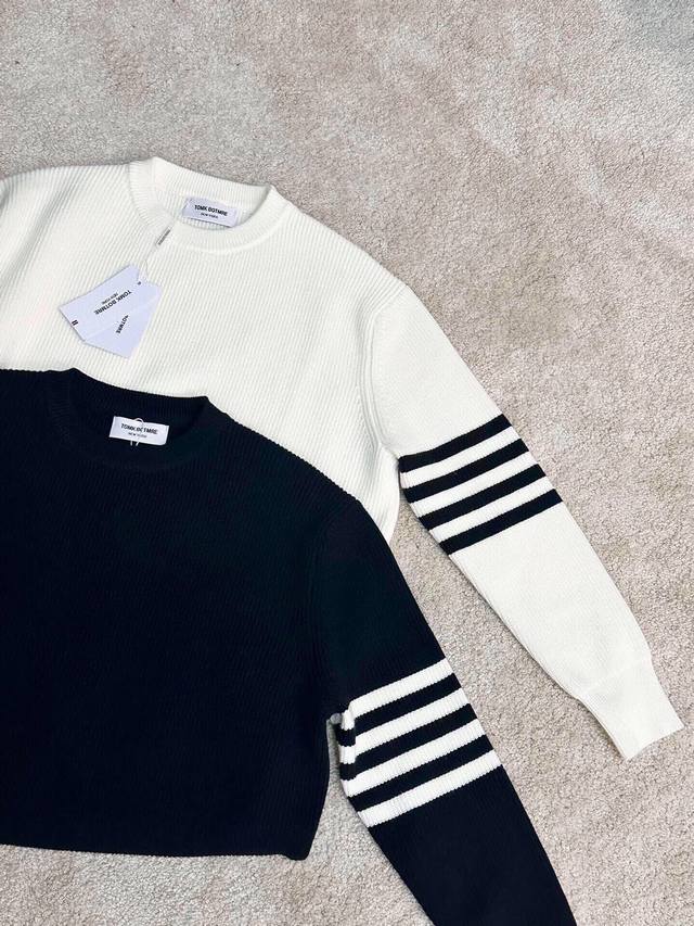 Tb Classic crew neck pullover sweater, close-fitting and comfortable, elongating the neckline with a refined and attractive look. After multiple pattern revisions, the overall style is comfortable, skin-friendly, gentle, and delicate, exuding a simple and elegant charm. Four stripes on the sleeves break the monotony, adding a touch of British style without sacrificing fashion sense; a classic and unique mark that showcases attention to detail while enhancing the overall fashion and design. The simple back neckline is meticulously tailored with smooth, clean lines, and neat, tight stitching, highlighting exceptional fashion taste. Colors: Black, White. Sizes: M~3X. Style Number: 8821.