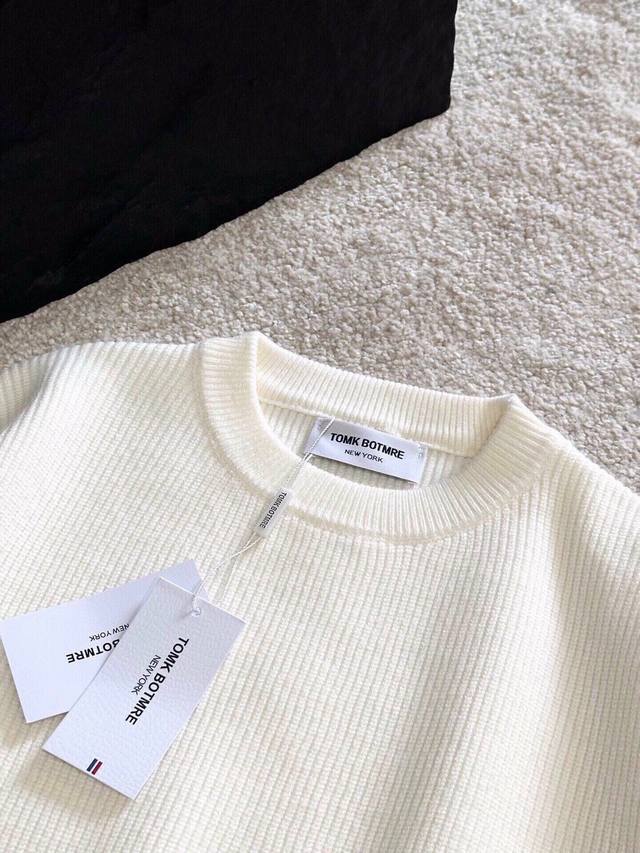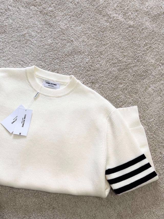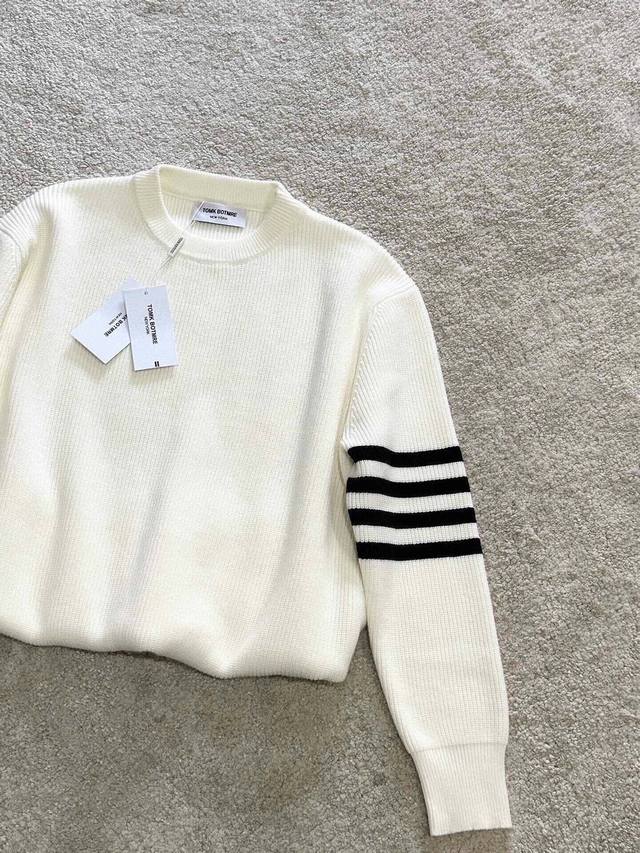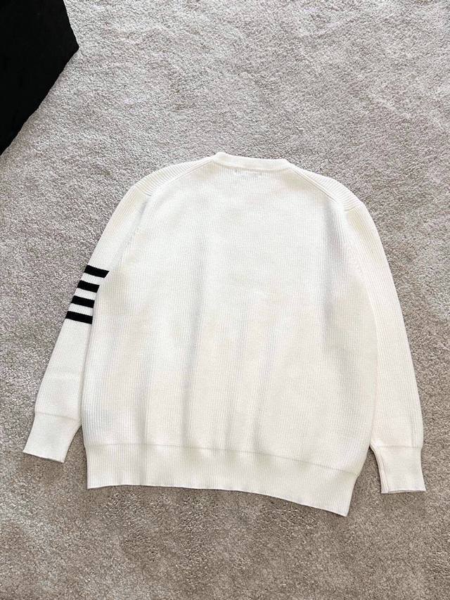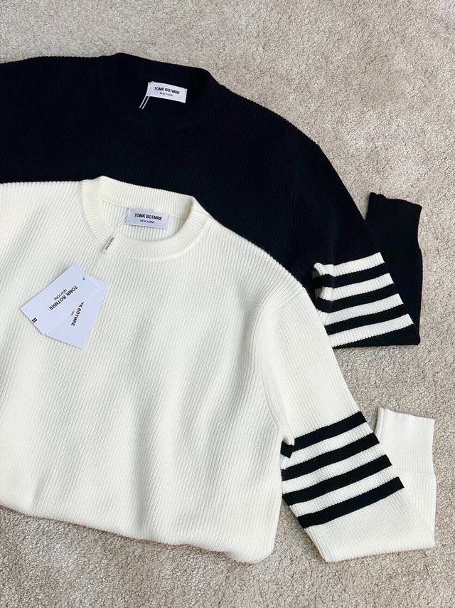 Tb Classic crew neck pullover sweater, close-fitting and comfortable, elongating the neckline with a refined and attractive look. After multiple pattern revisions, the overall style is comfortable, skin-friendly, gentle, and delicate, exuding a simple and elegant charm. Four stripes on the sleeves break the monotony, adding a touch of British style without sacrificing fashion sense; a classic and unique mark that showcases attention to detail while enhancing the overall fashion and design. The simple back neckline is meticulously tailored with smooth, clean lines, and neat, tight stitching, highlighting exceptional fashion taste. Colors: Black, White. Sizes: M~3X. Style Number: 8821.