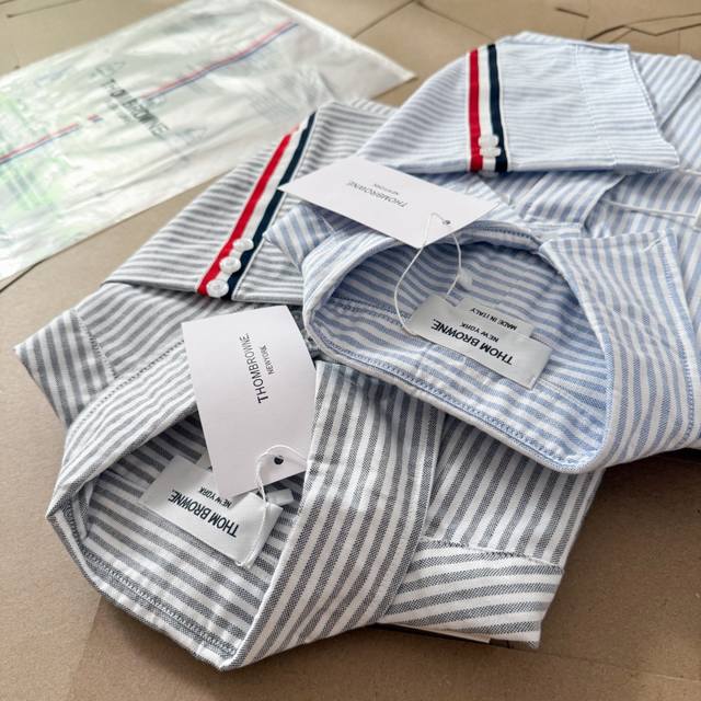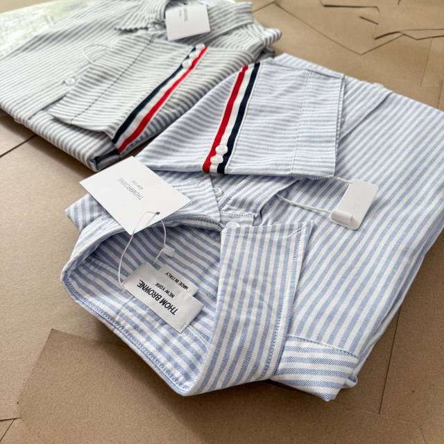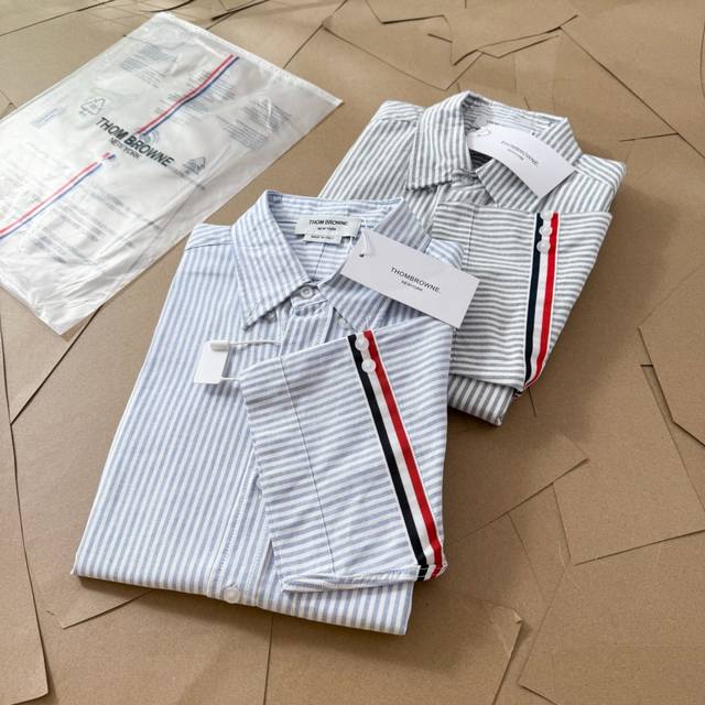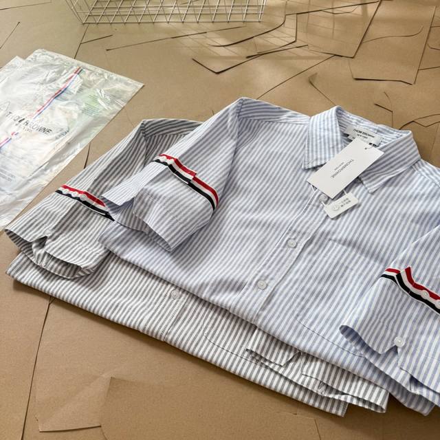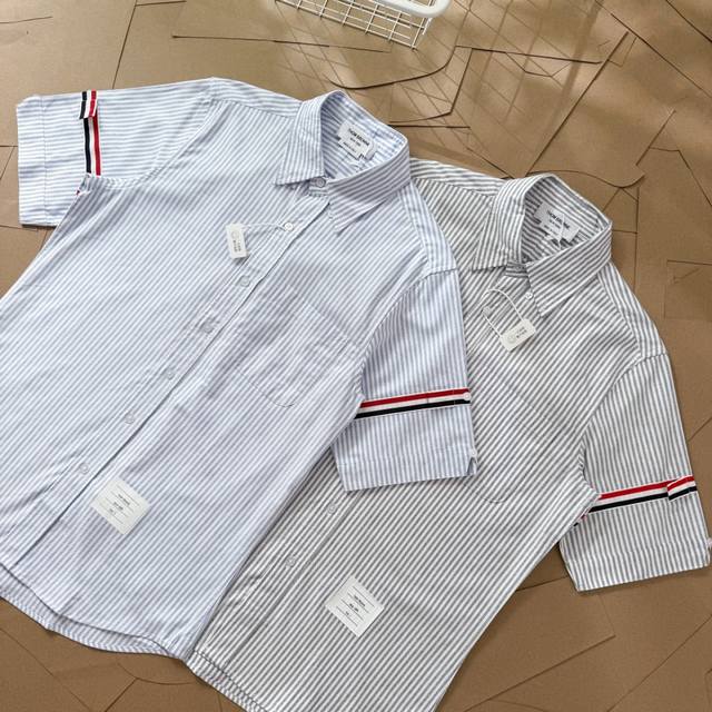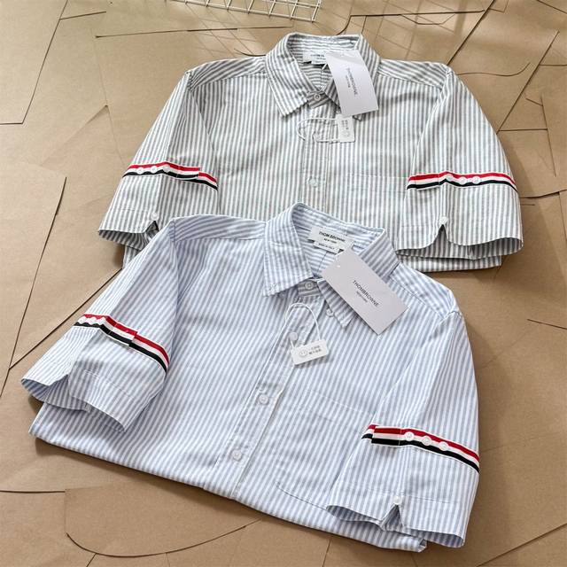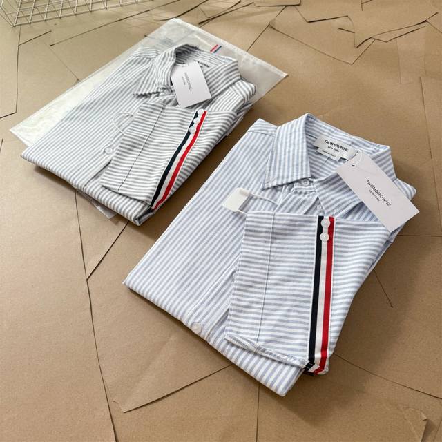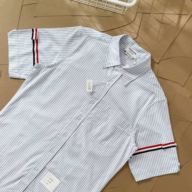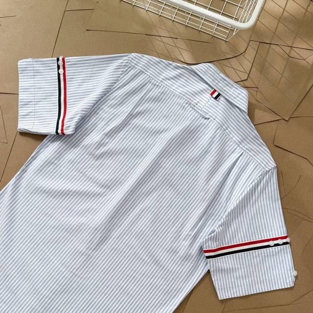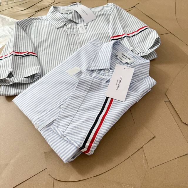 Tb double sleeve striped Oxford short-sleeved shirt T88