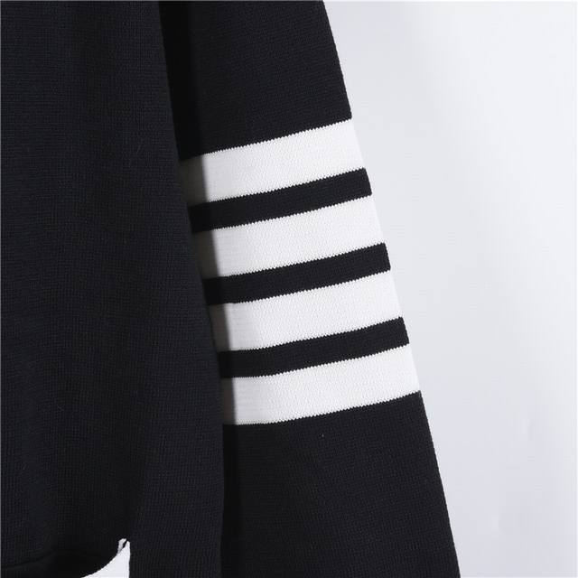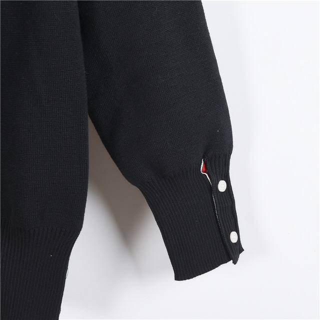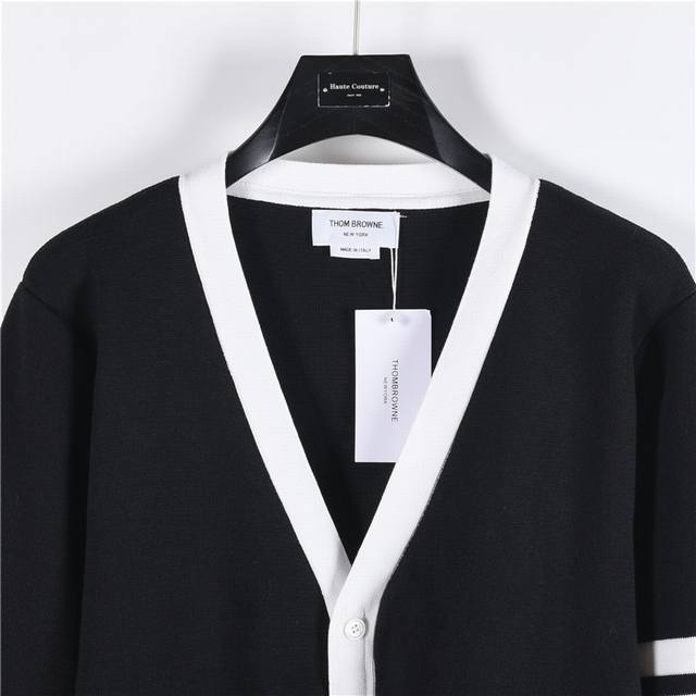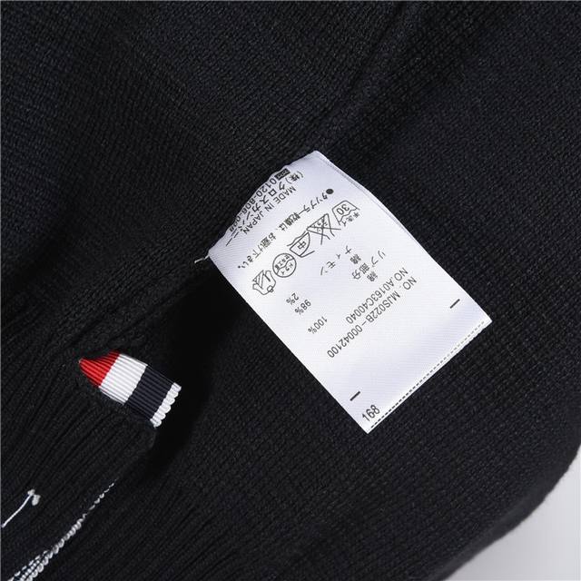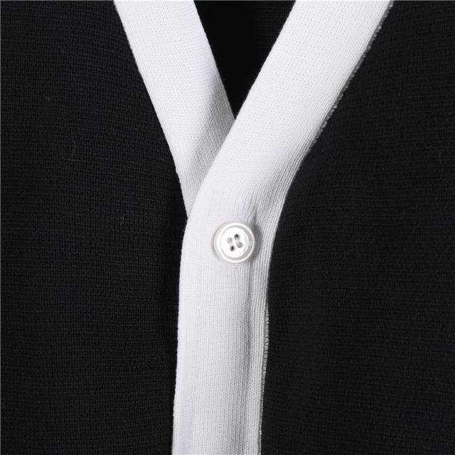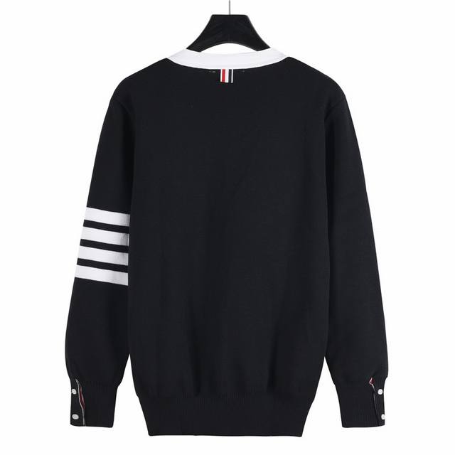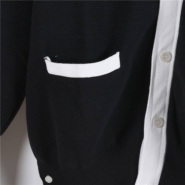 Tb New Color Block Knit Cardigan, Four Stripes, Wool Blend Sweater, Thom Browne. This new color block striped four-stripe thick knit cardigan features a five-button design and is made in Italy. It's soft and comfortable, woven on imported Japanese automatic knitting machines with tight stitches. The back neck features a bound edge for a premium look. The sleeves are knitted with four stripes. The buttons are natural shell-shaped. The fit can be fitted or loose. Comfortable and breathable, unisex. All tags and labels are included. A full gift box can be added. Colors: White, Gray, Navy Blue, Black. Sizes: 1 2 3 4.