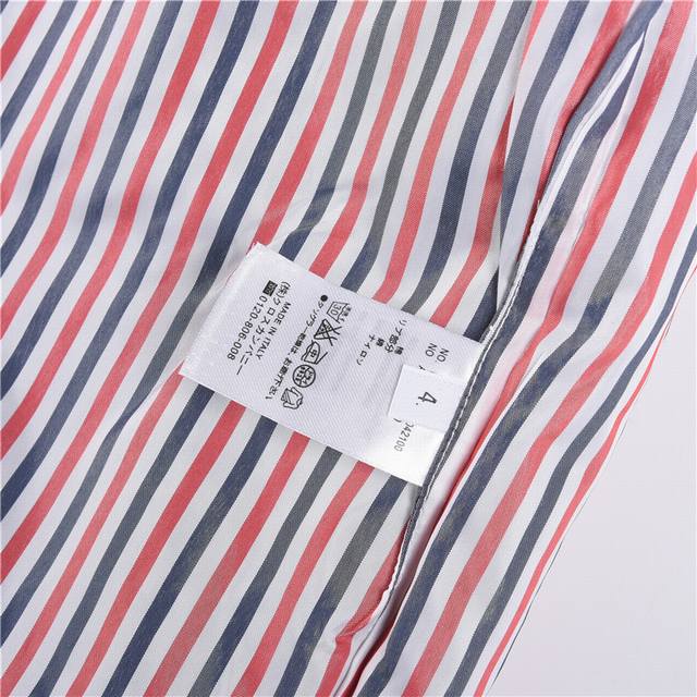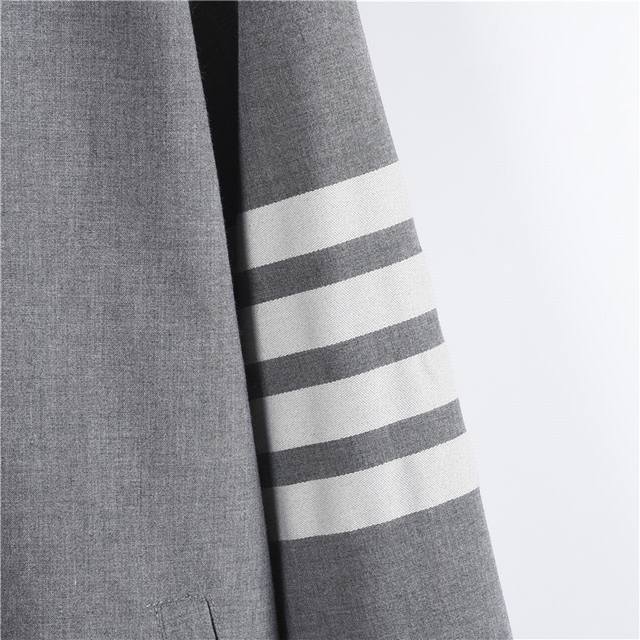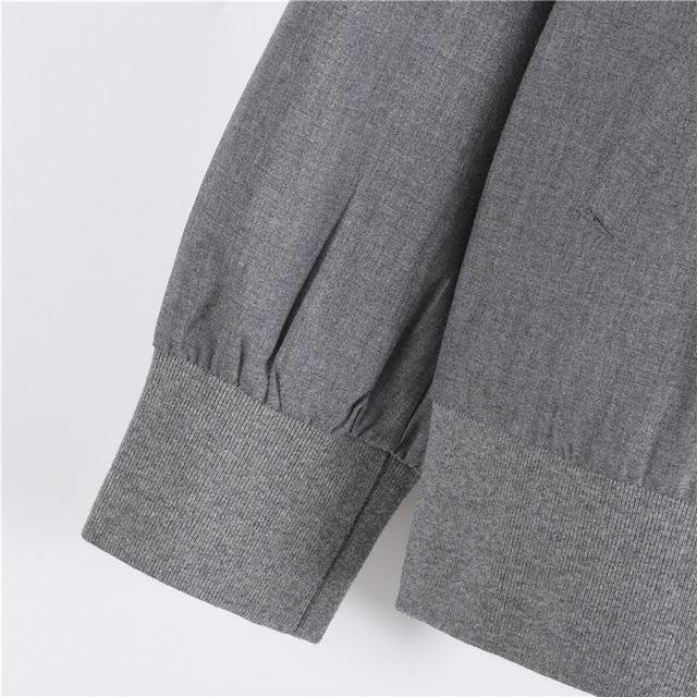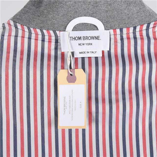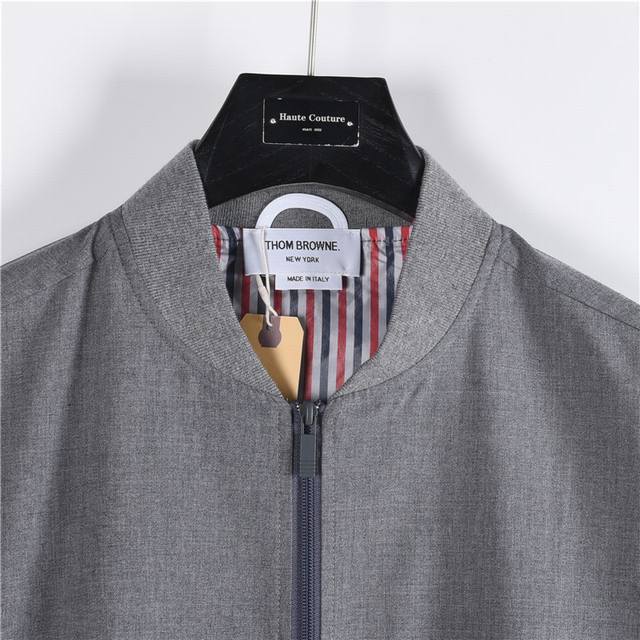 Thom Browne. Tb wool yarn-dyed jacket, baseball jacket, zippered jacket. One-to-one replica buttons with Tb logo. Made in Italy. Made of custom wool yarn-dyed fabric. Buttons with Tb logo. Custom hardware snap buttons. Neatly aligned letters. Back collar webbing made from authentic Tb pattern. 2.5cm red, white, and blue webbing. High-end and classy interior stripes. Red, white, and blue lining. Own-brand factory production on assembly lines. Fine stitching and neat stitching.