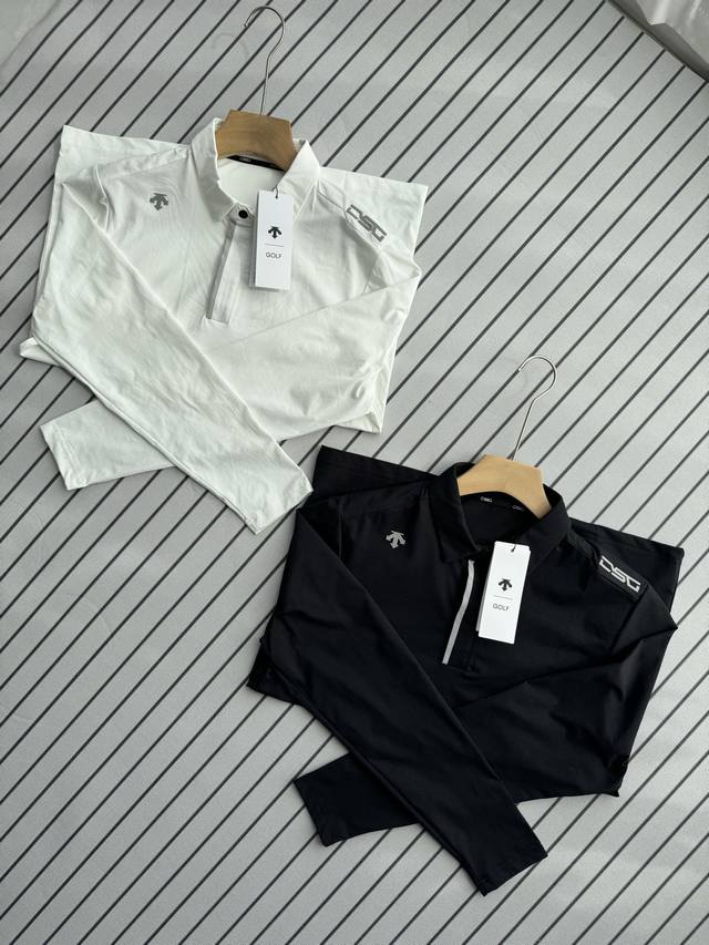 The Descente Golf men's classic four-way stretch long-sleeved polo shirt is designed for elite men who pursue exceptional athletic performance and high-end fashion.