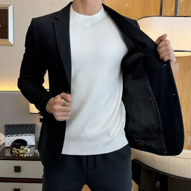 This autumn's hottest casual wool blazer from Genia Ss features a stylish and simple design, exuding elegance and sophistication. Made from a custom-designed polyester-wool blend, this blazer deviates from traditional designs, resulting in a more youthful and fashionable look. The details are meticulously crafted. While the fit is classic, the cut is unique, neither too loose nor too fitted, offering a flattering silhouette for all body types. Sizes: 48-56 (
