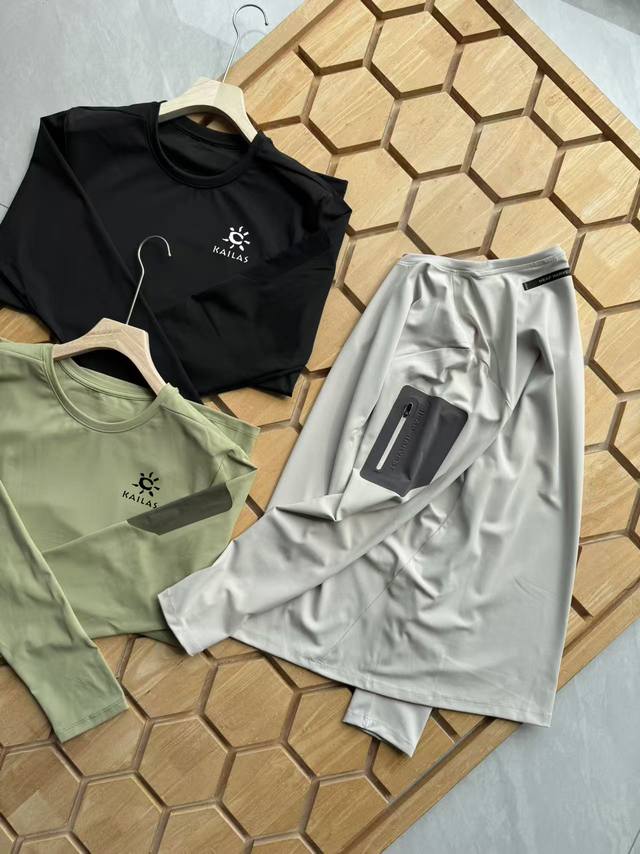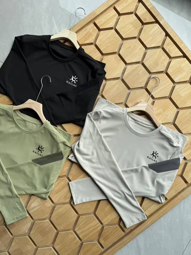 Kailas (Kaila stone) full-body spliced raglan sleeve long-sleeved outdoor casual base layer shirt with silicone logo. It's a functional long-sleeved base layer shirt for couples and sports. The