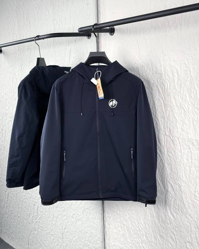 original custom fabric is not only stain-resistant and water-repellent, but also offers excellent freedom of movement. The adjustable hood provides better wind protection, and the Asian fit is more suitable for Chinese body types. It features high-quality zippers that operate smoothly, a classic embroidered elephant logo, two zippered side pockets for storing personal items, a drawstring hem for one-handed adjustment, and the drawstring can be tucked inside. It has a durable, water-repellent DWR finish. A classic and versatile piece, don't miss it! Color: Black/Navy Blue Size: M-2XL Size Chart: Length, Chest, Shoulder Width, Sleeve Length, Suggested Weight M 70 114 52 63 110-130 L 72 118 54 64 130-155 XL 74 122 56 65 155-175 2XL 76 126 58 66 175-195