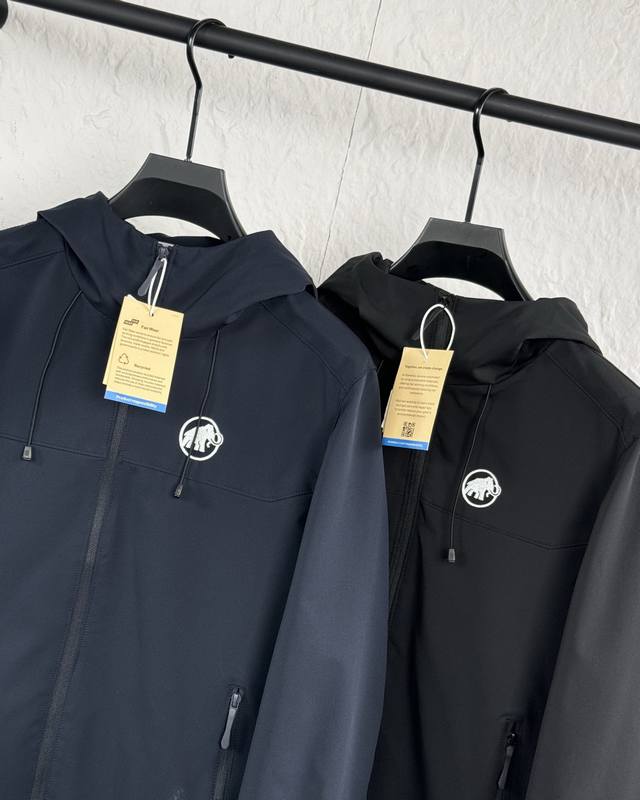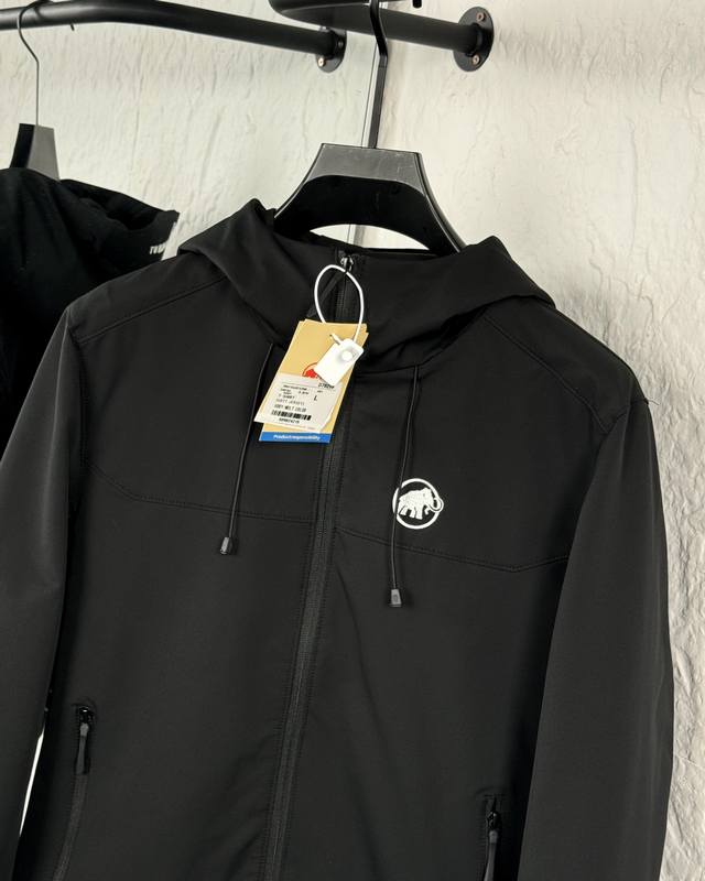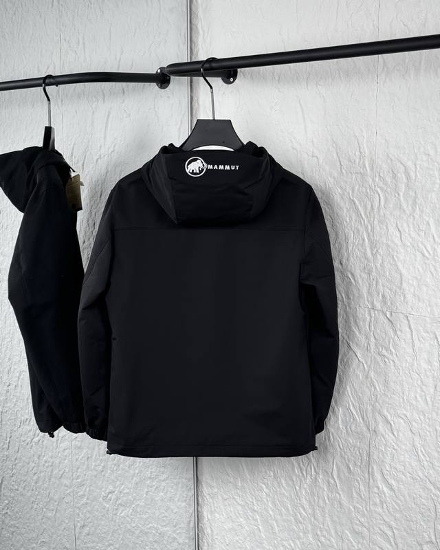 Mammut 2025 Fall New Arrival Softshell Hooded Windproof and Water-Repellent Jacket. Made with Mammutsoftech TM elastic softshell fabric, it's lightweight and warm inside. The